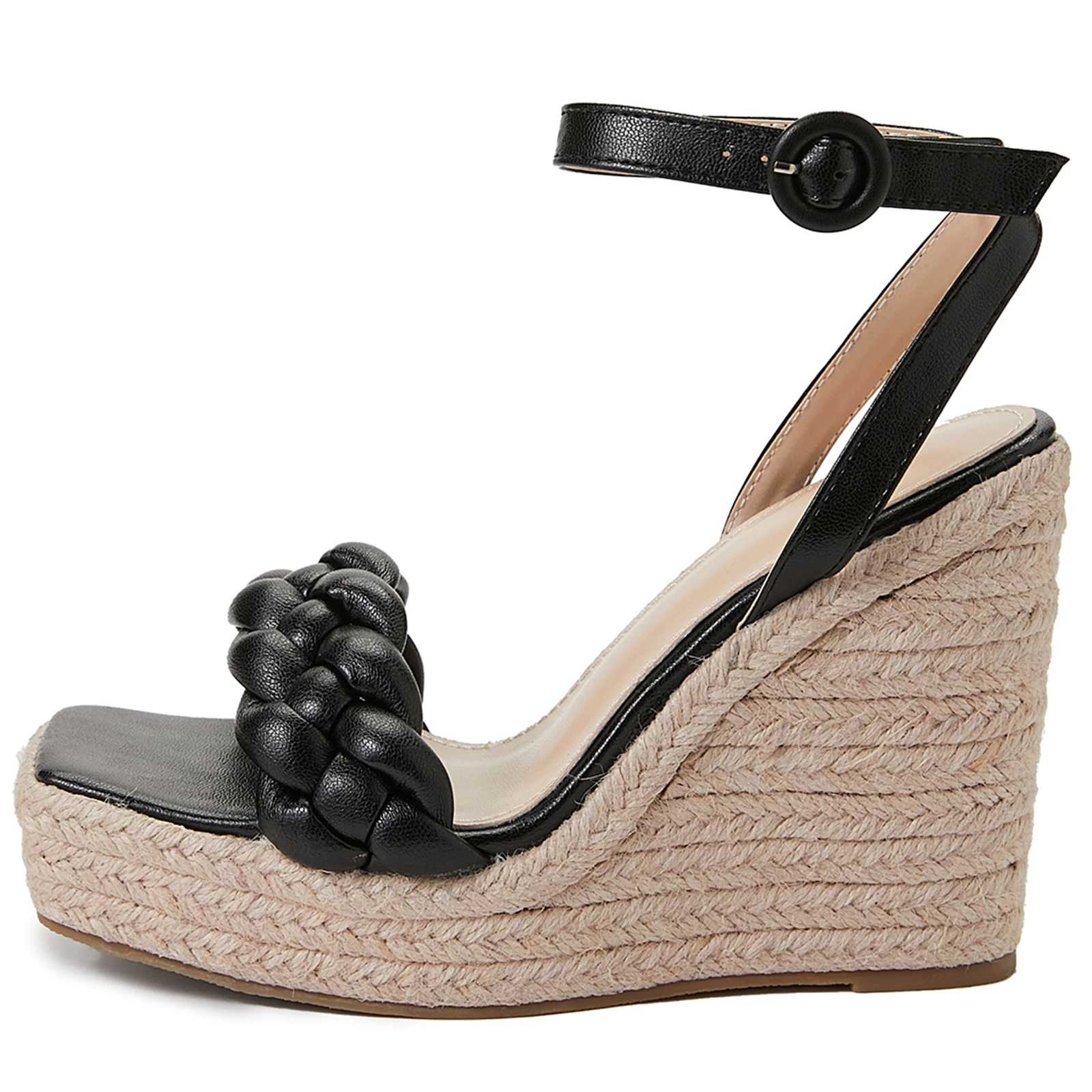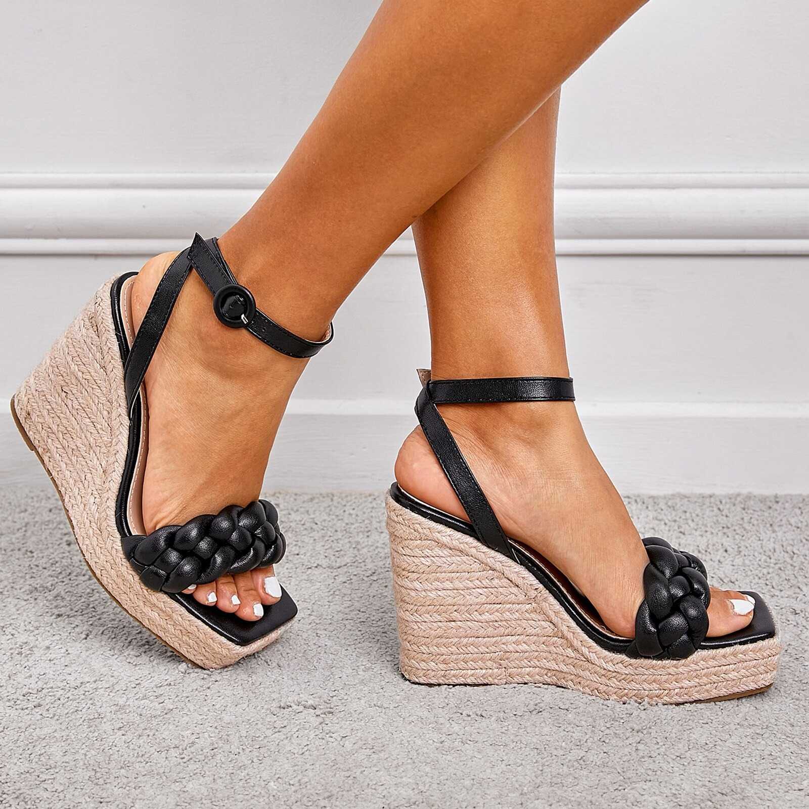 Black Sandały na koturnie