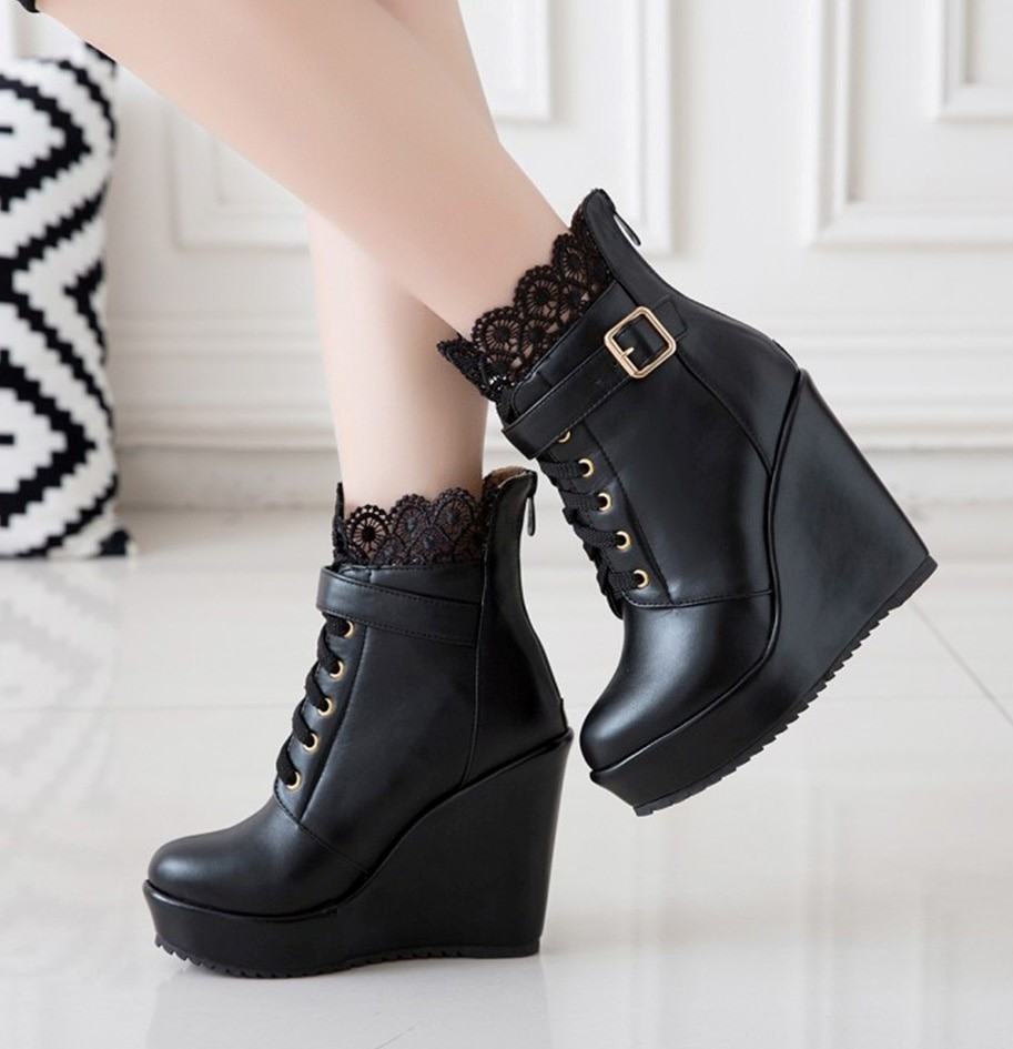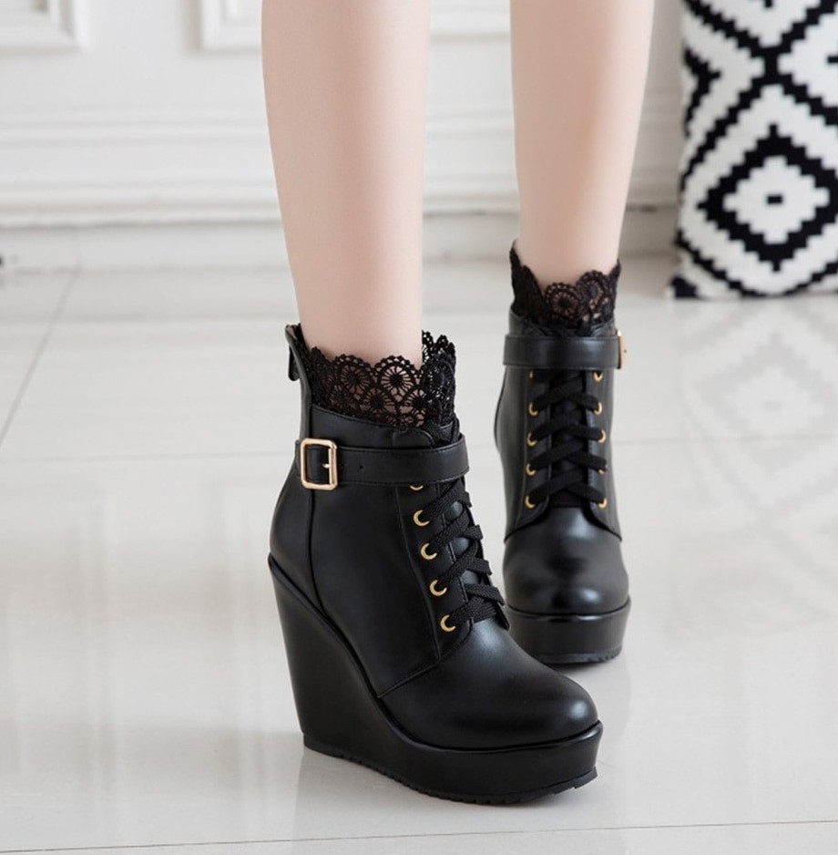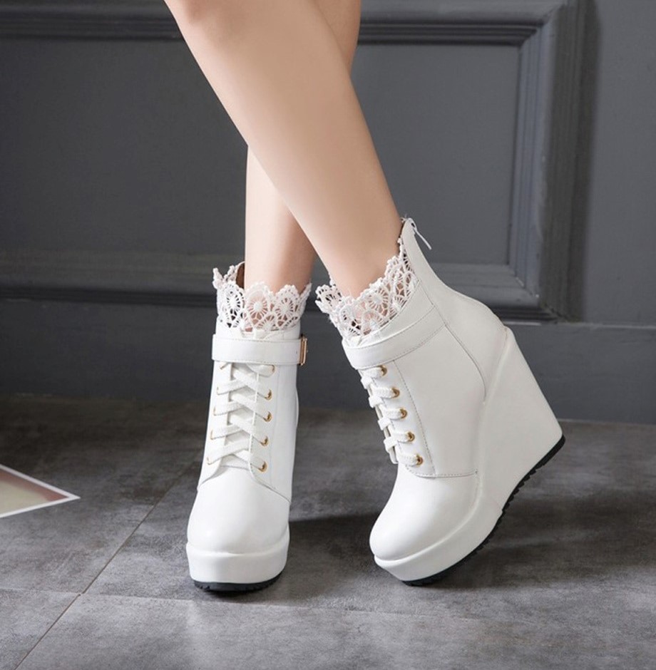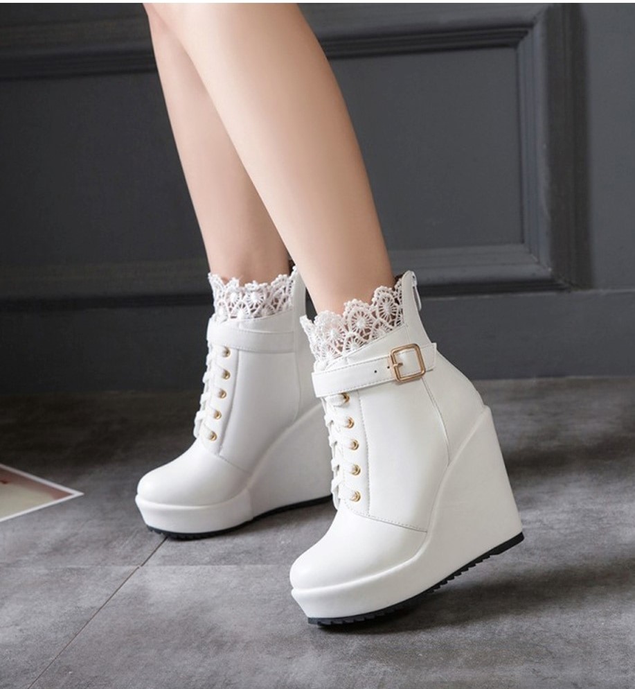 Botki koturny z koronką