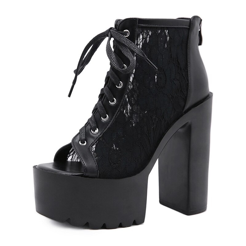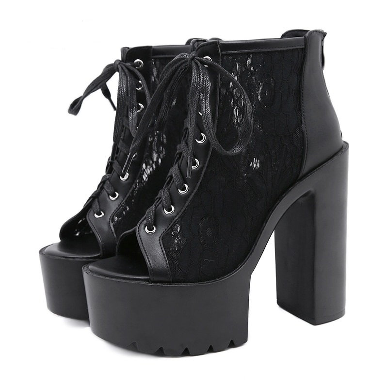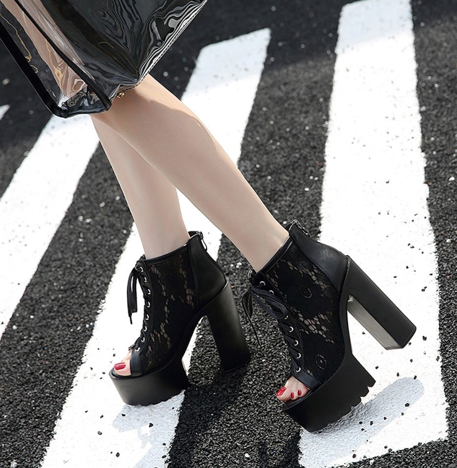 Botki platformy z koronką