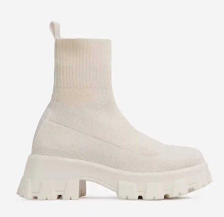 Platforma dodaje butom eleganckiego wyglądu, jednocześnie zapewniając stabilność i wygodę podczas chodzenia.