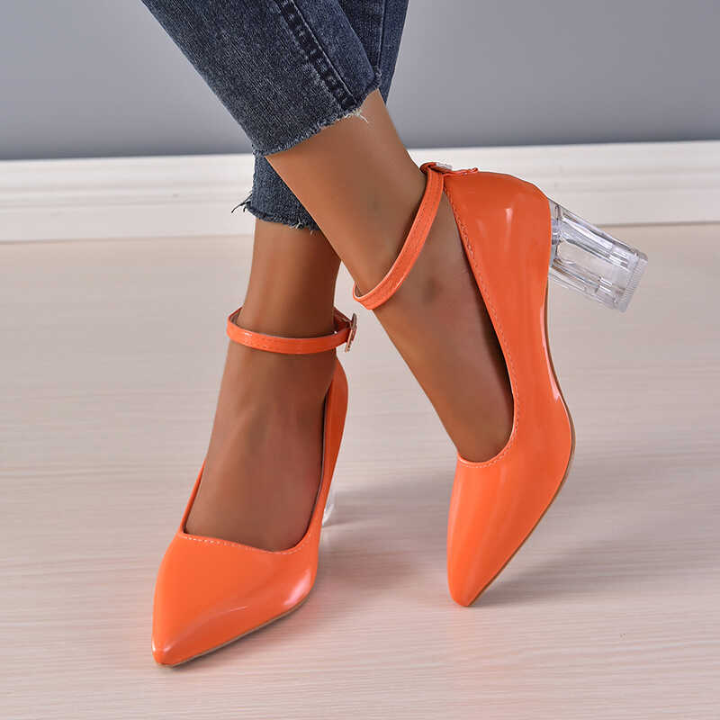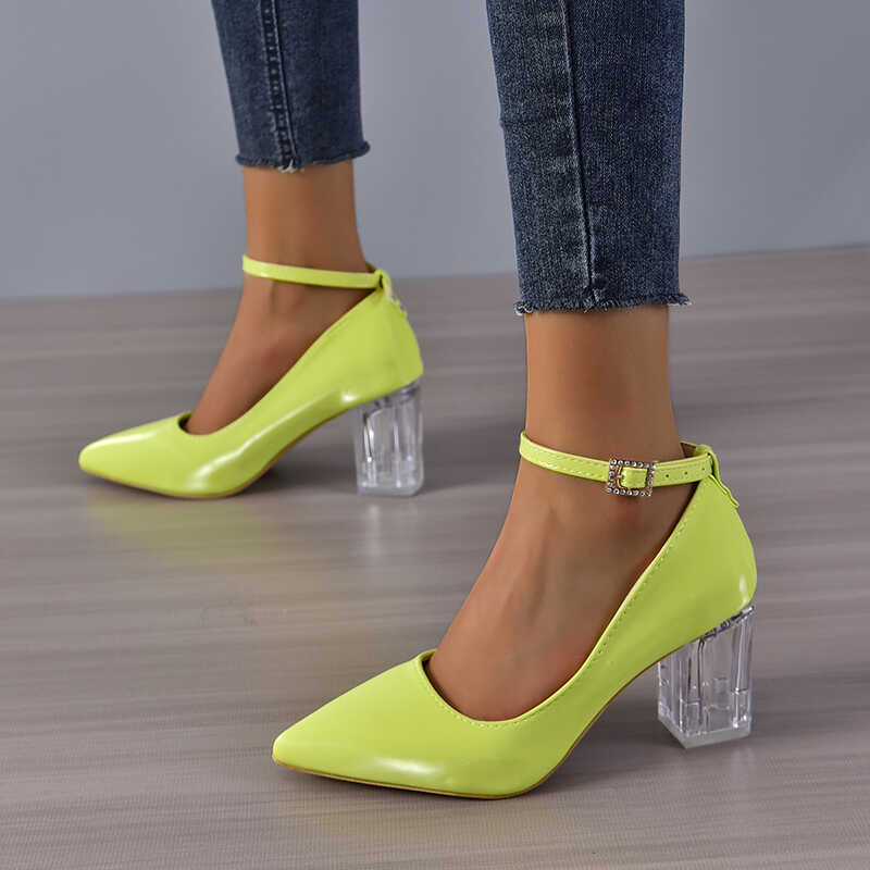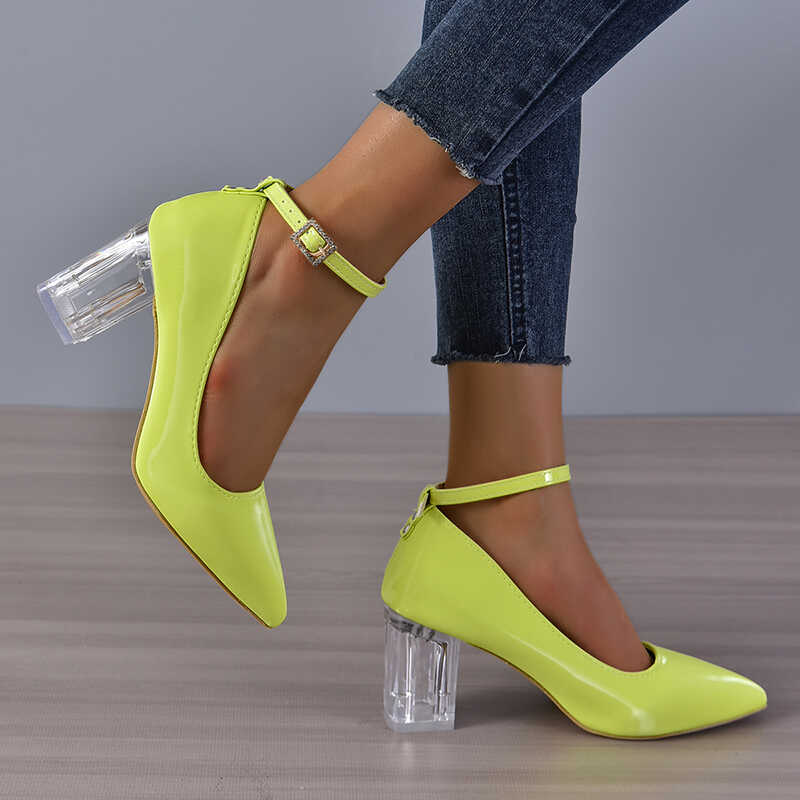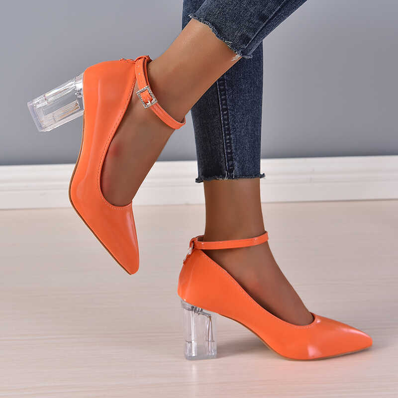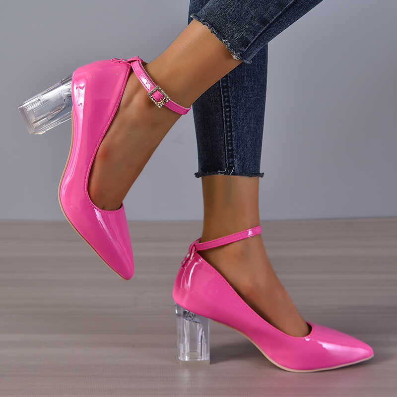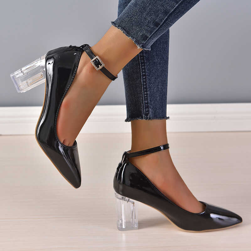 Czółenka na przezroczystym słupku