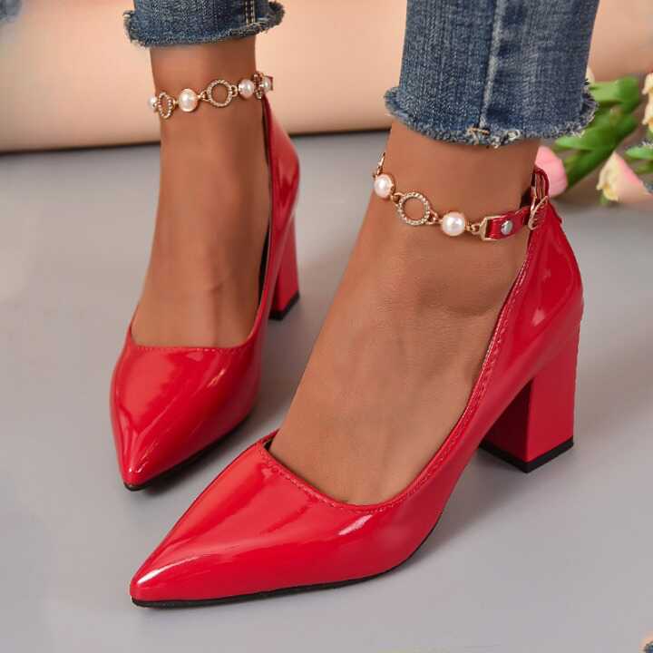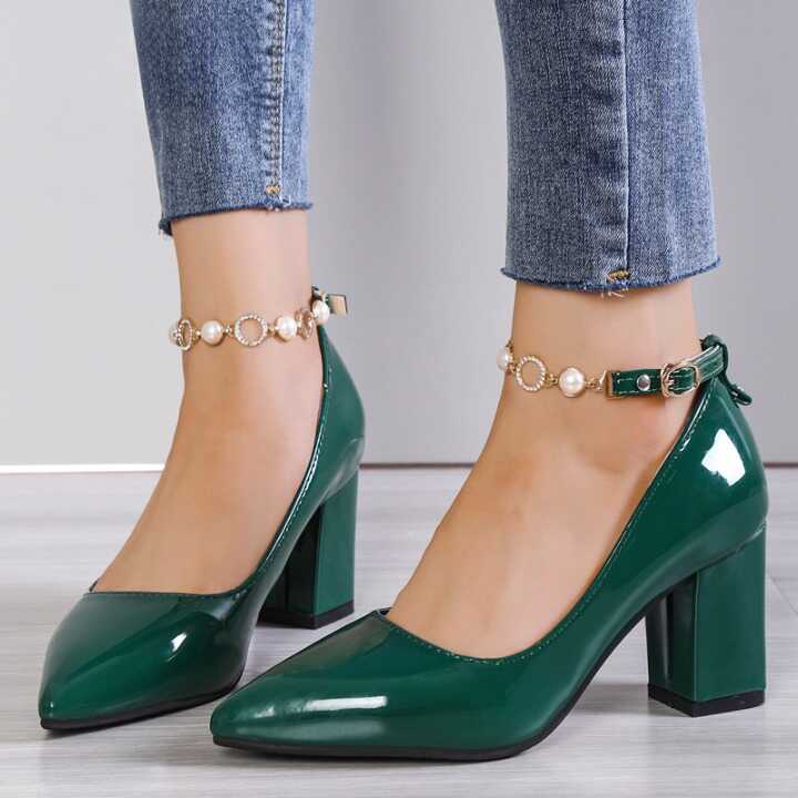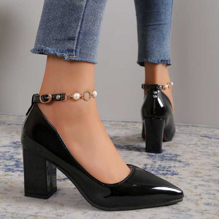 Czółenka z perełkami wokół kostki