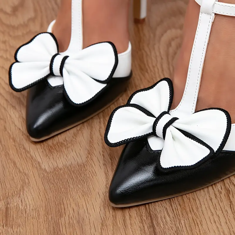 Eleganckie czarno-białe szpilki z kokardką
