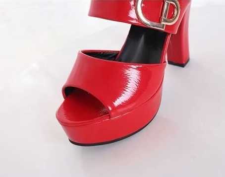 Zdobione są dużą, błyszczącą klamrą a wysoki obcas podkreśla elegancki wygląd.