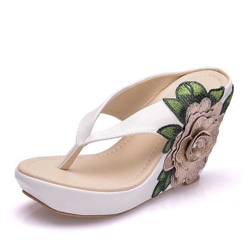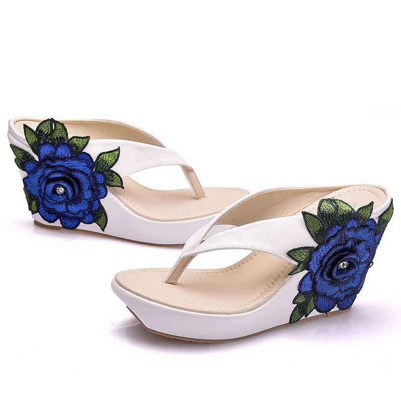 Klapki z kwiatkami i koralikami