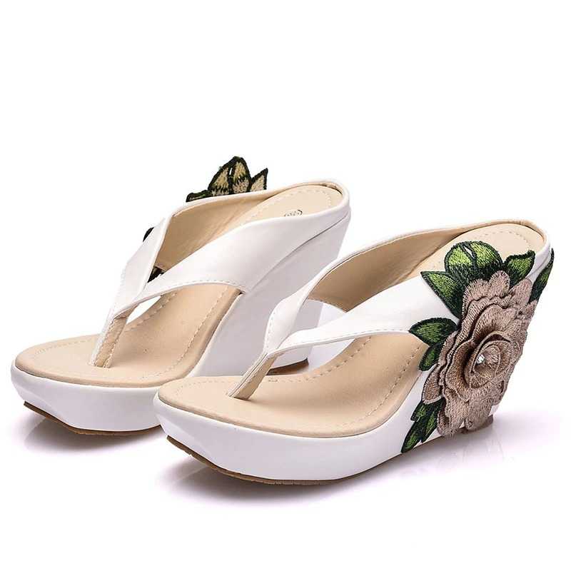 Skórzane klapki z kwiatami