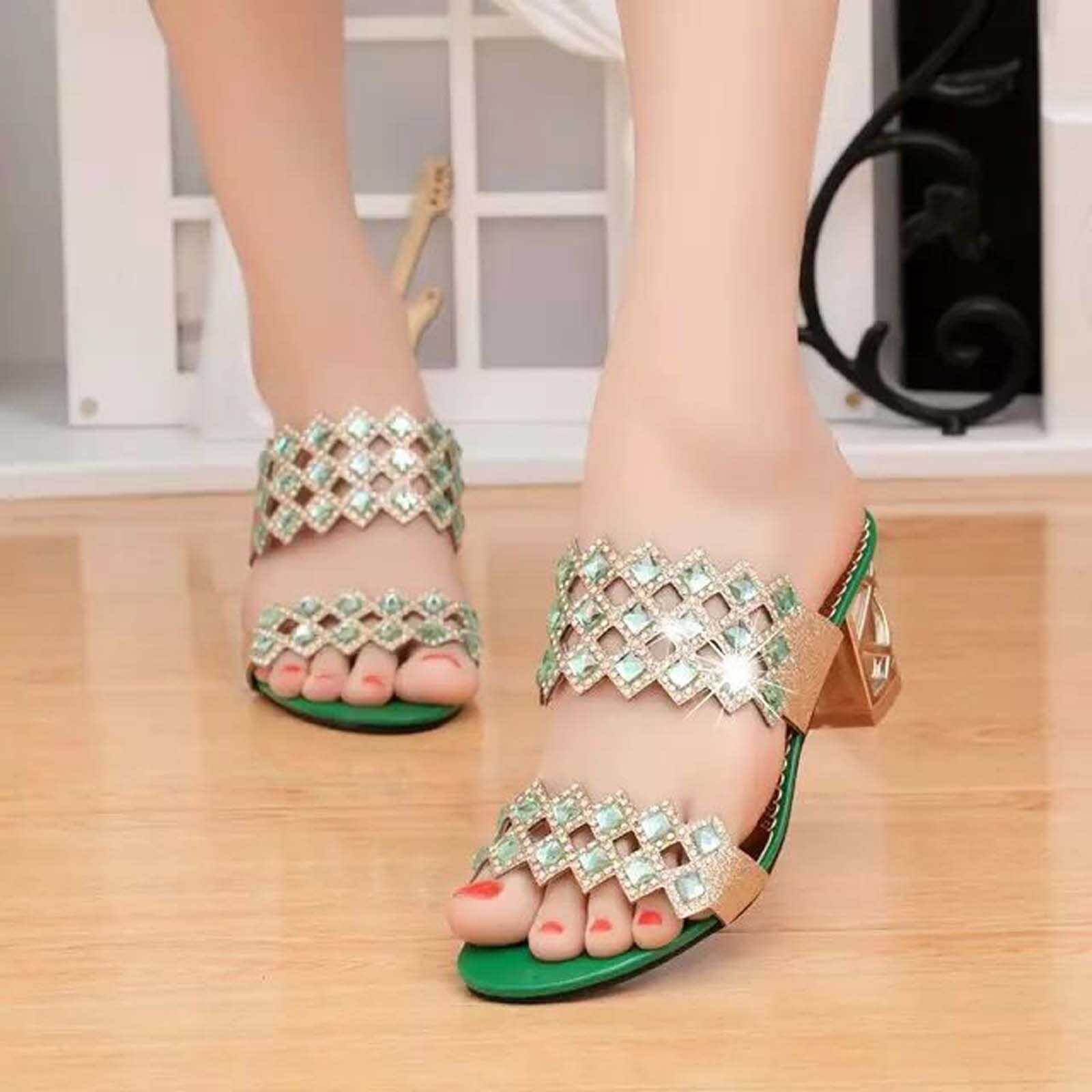 Zwróć uwagę na te śliczne klapki z kamyczkami. Buty mają oryginalny obcas z wgłębieniami, który dodaje im unikalnego stylu. Góra wykonana jest z ażurowego materiału zdobionego kamykami.