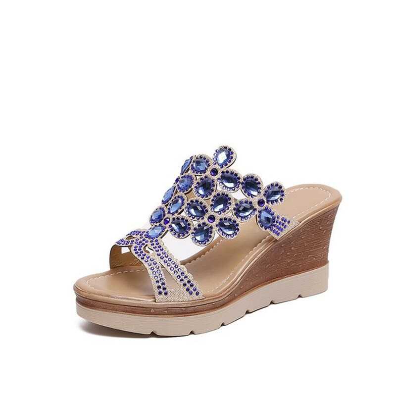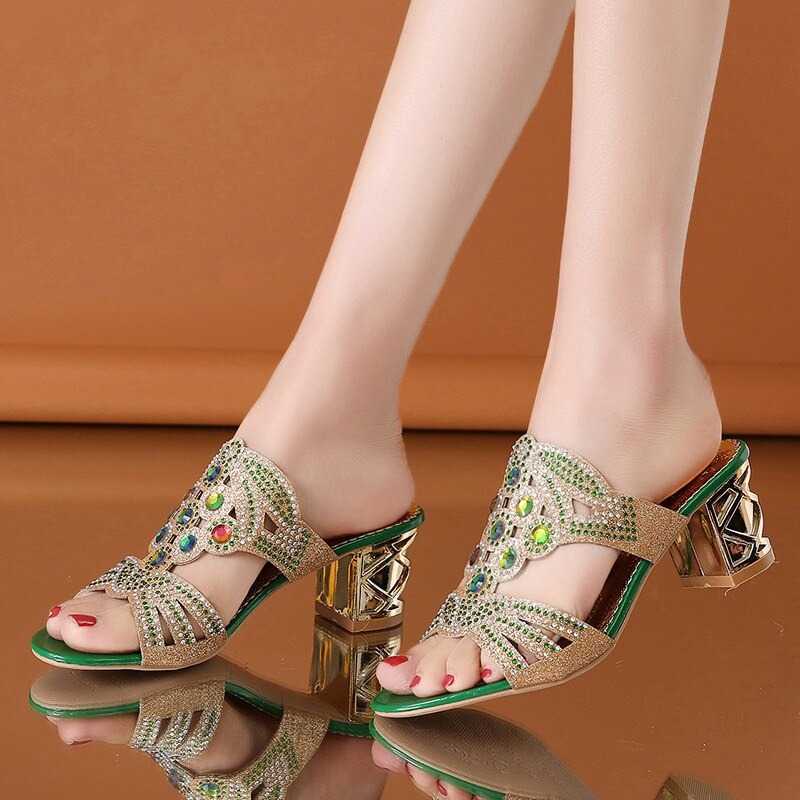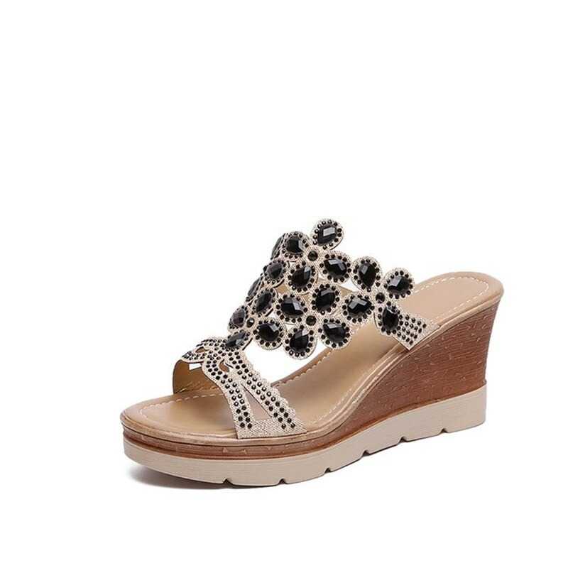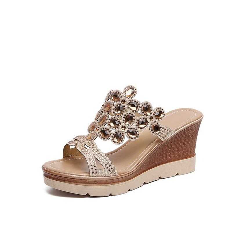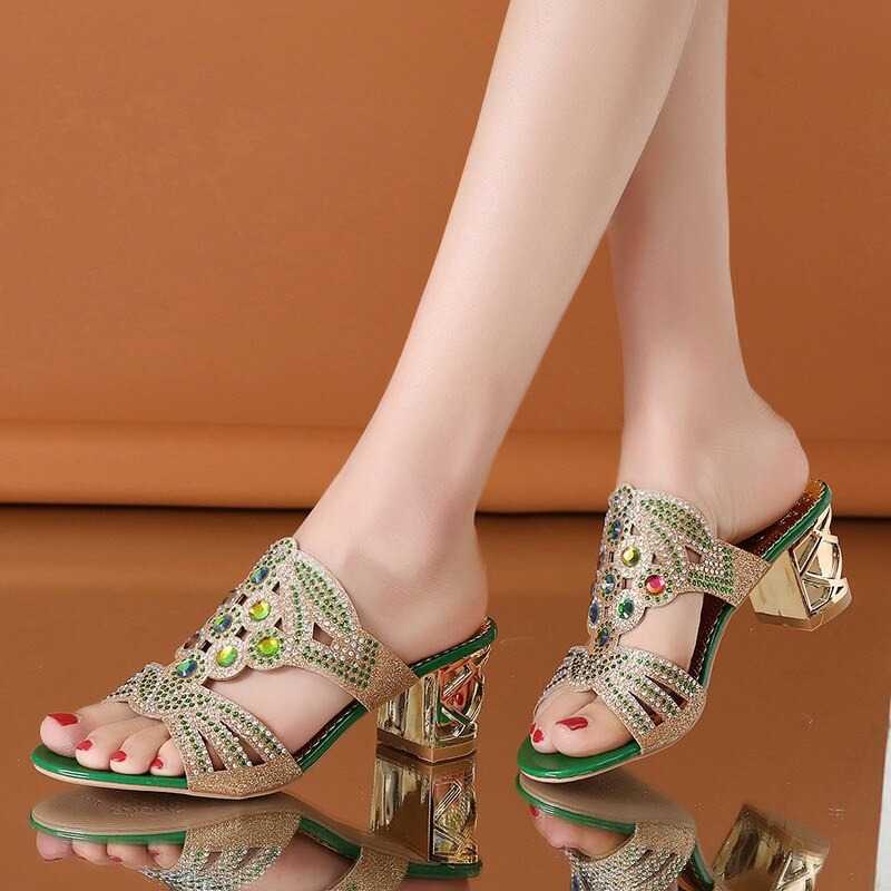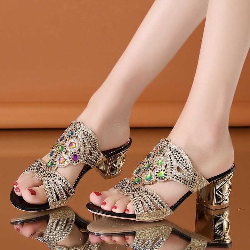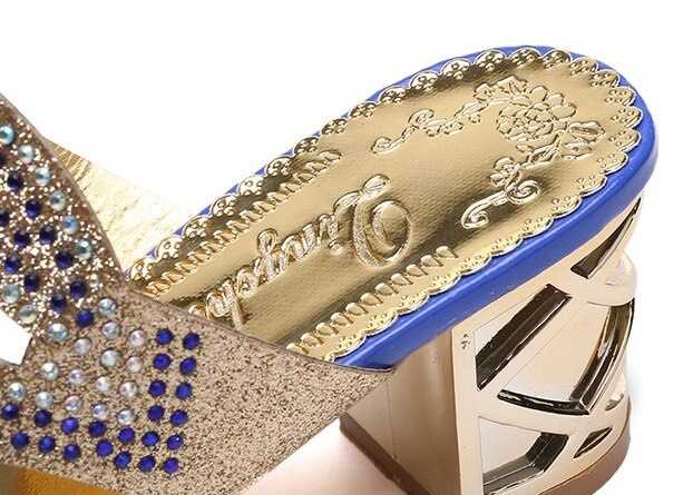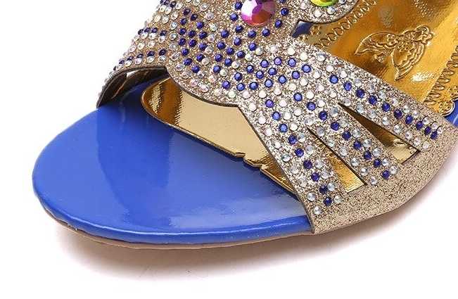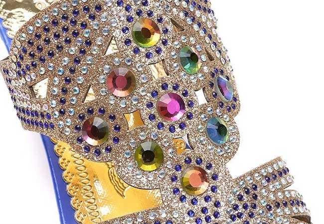 Oto klapki zdobione kamykami, które dostarczą Ci wspaniałych doznań wizualnych. Te piękne buty posiadają oryginalnie rzeźbiony obcas, który dodaje im unikalnego stylu. Góra wykonana jest z ażurowego materiału zdobionego kamykami.