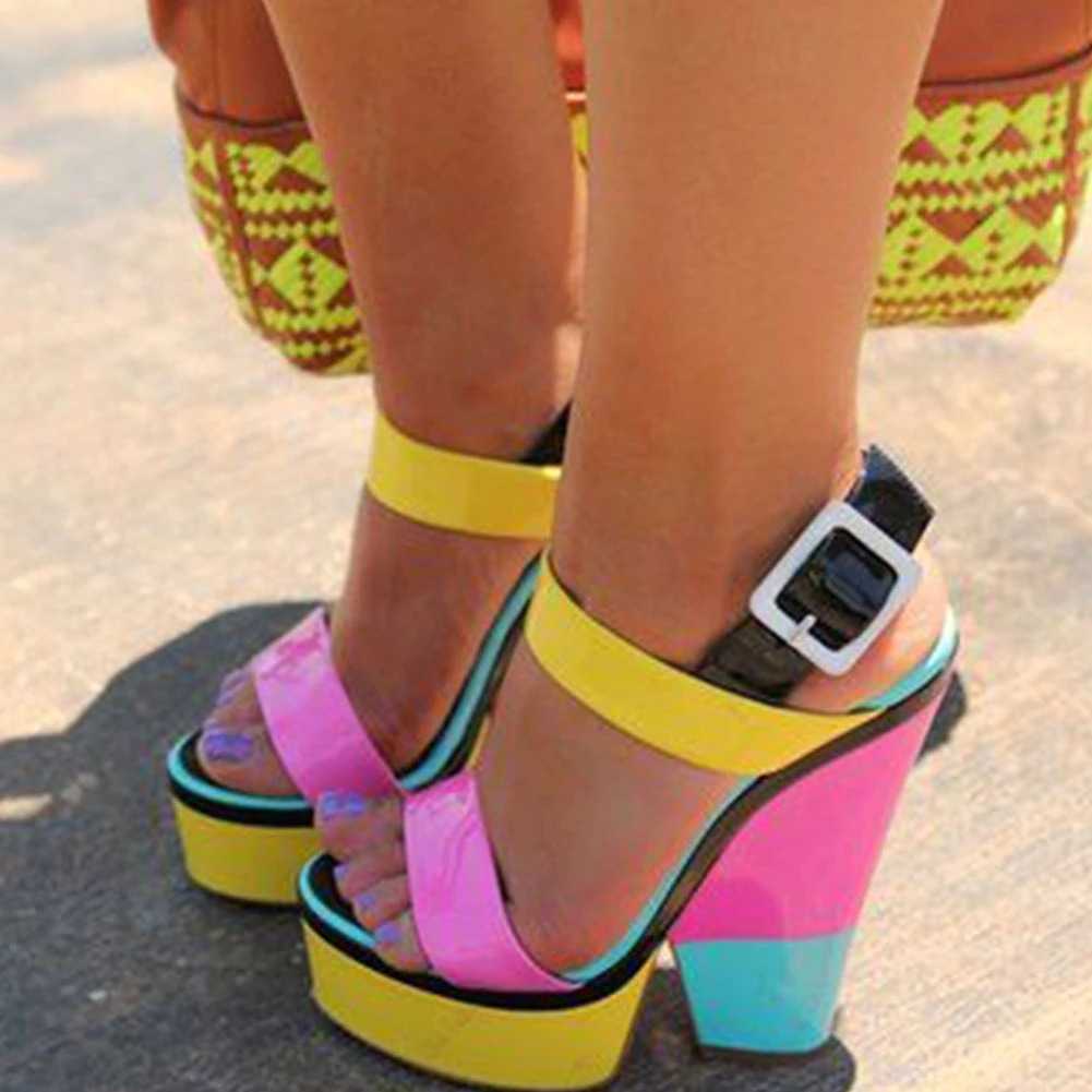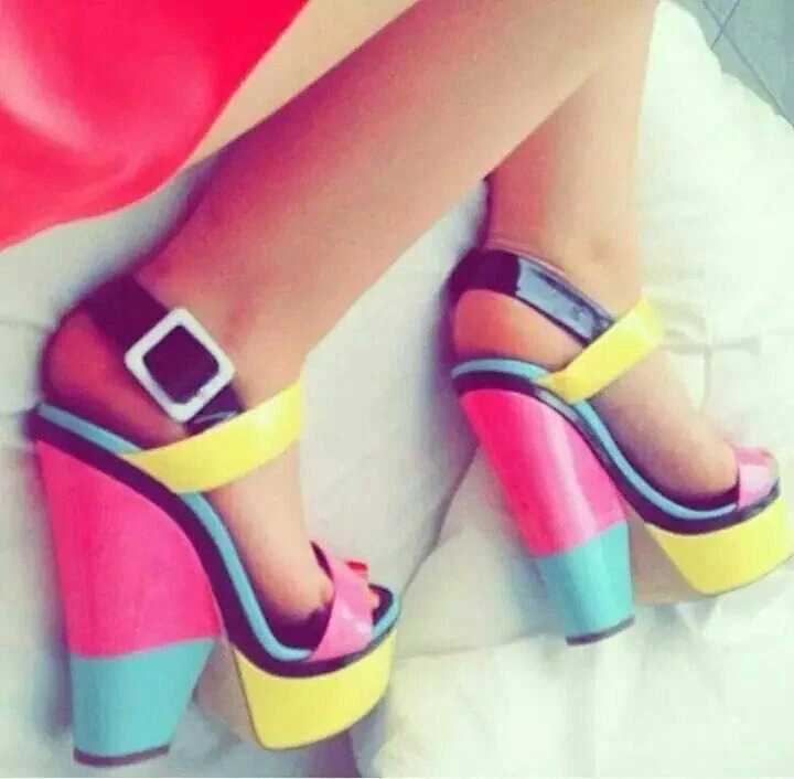 Klapki na wysokim kolorowym koturnie