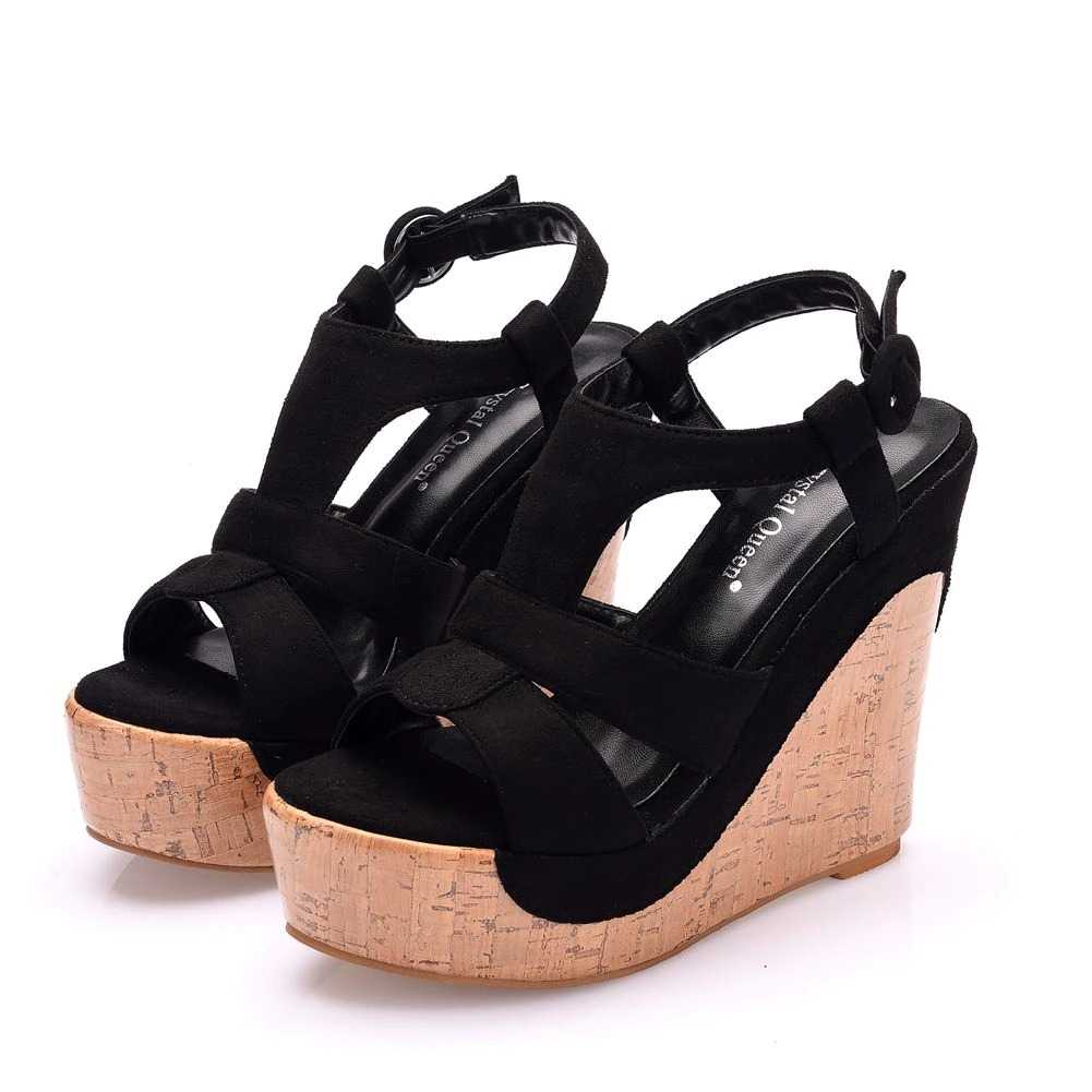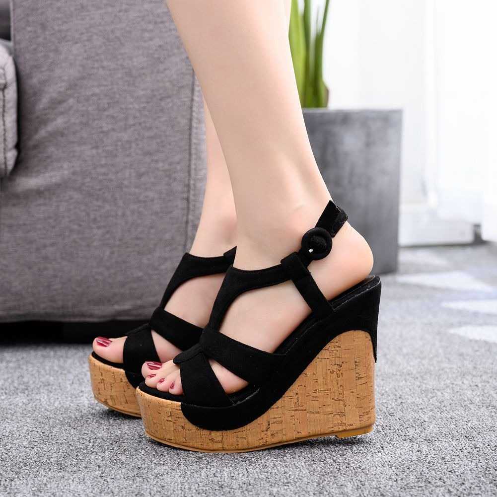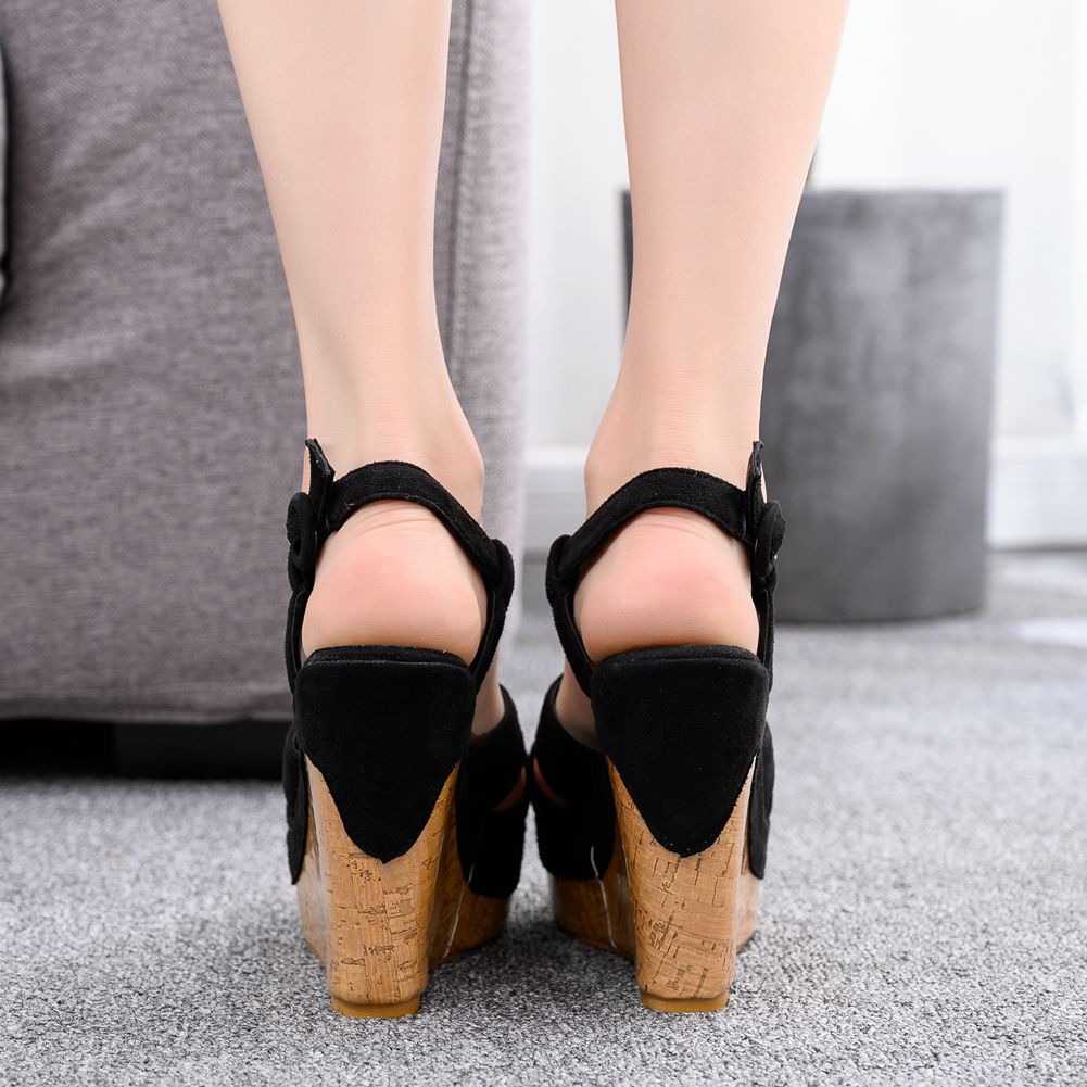 Ladies Czarne sandały na platformie
