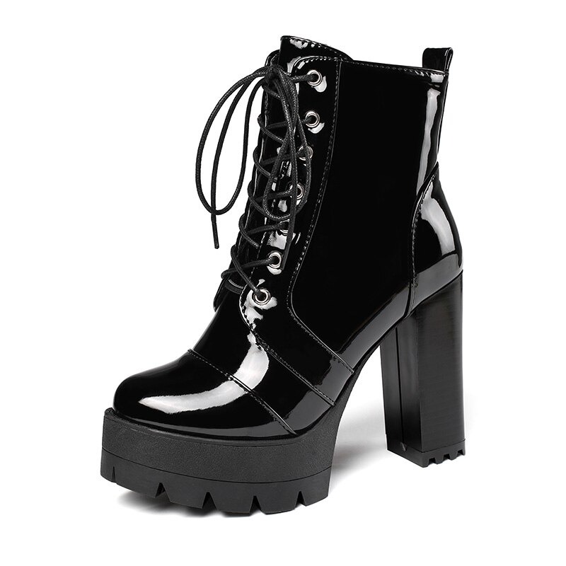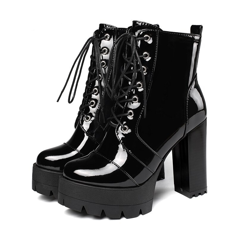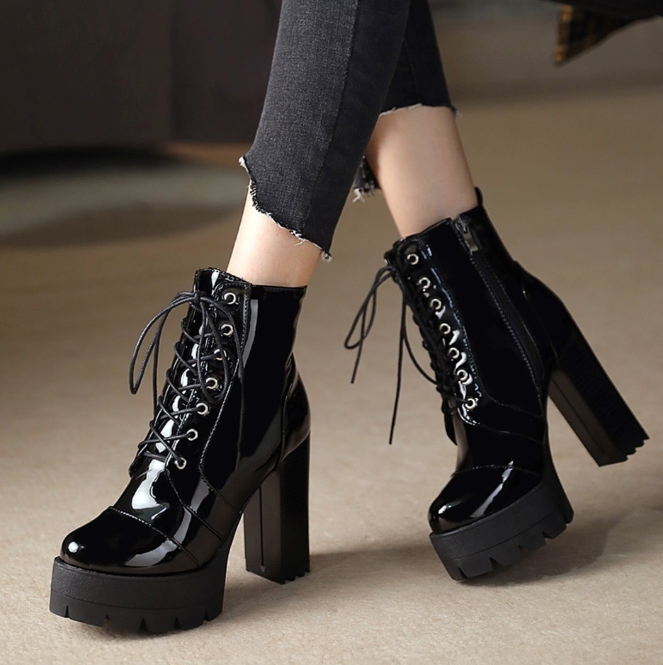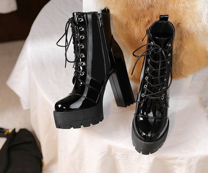 Lakierowane botki na obcasie