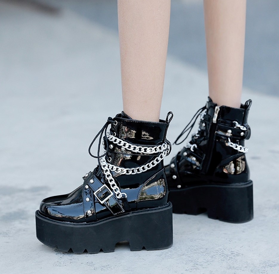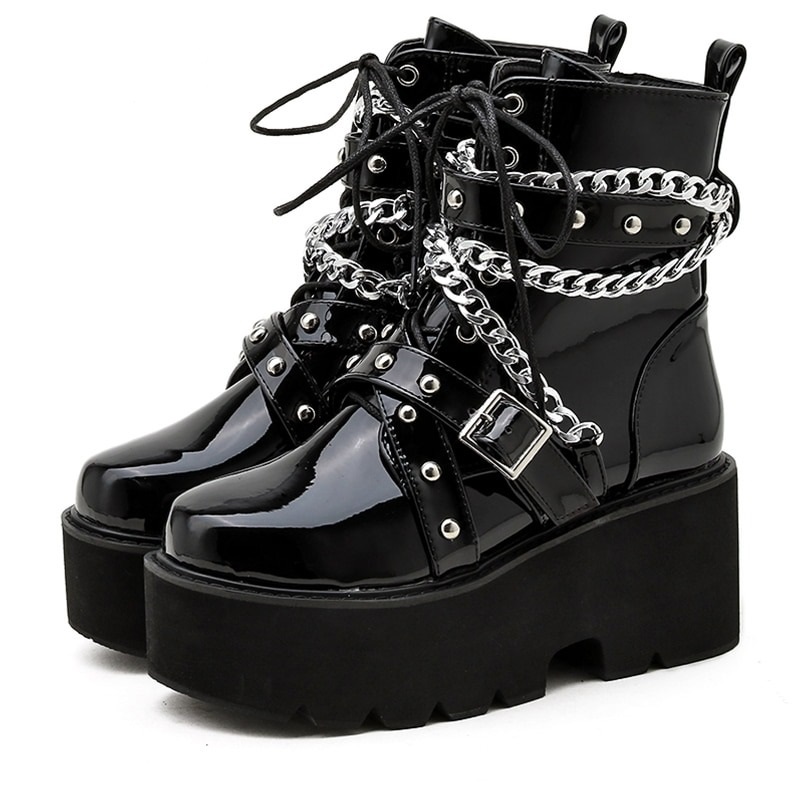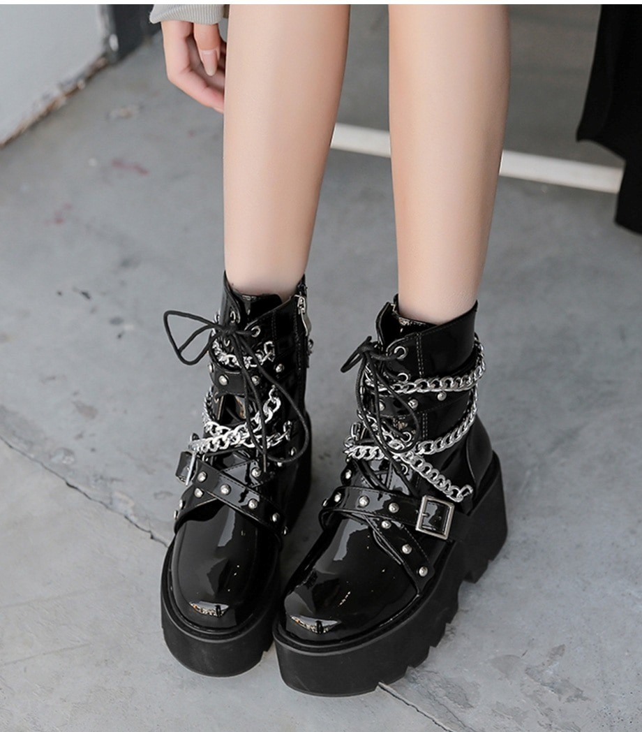 Lakierowane botki z łańcuchami