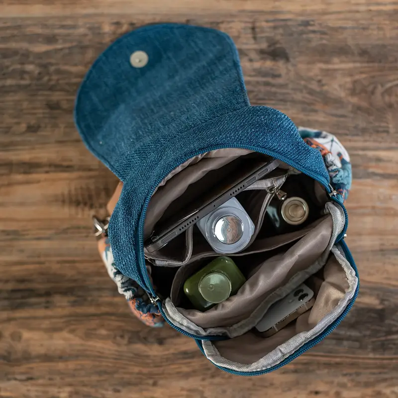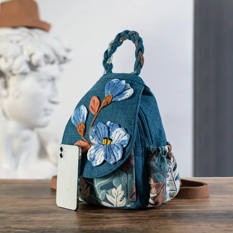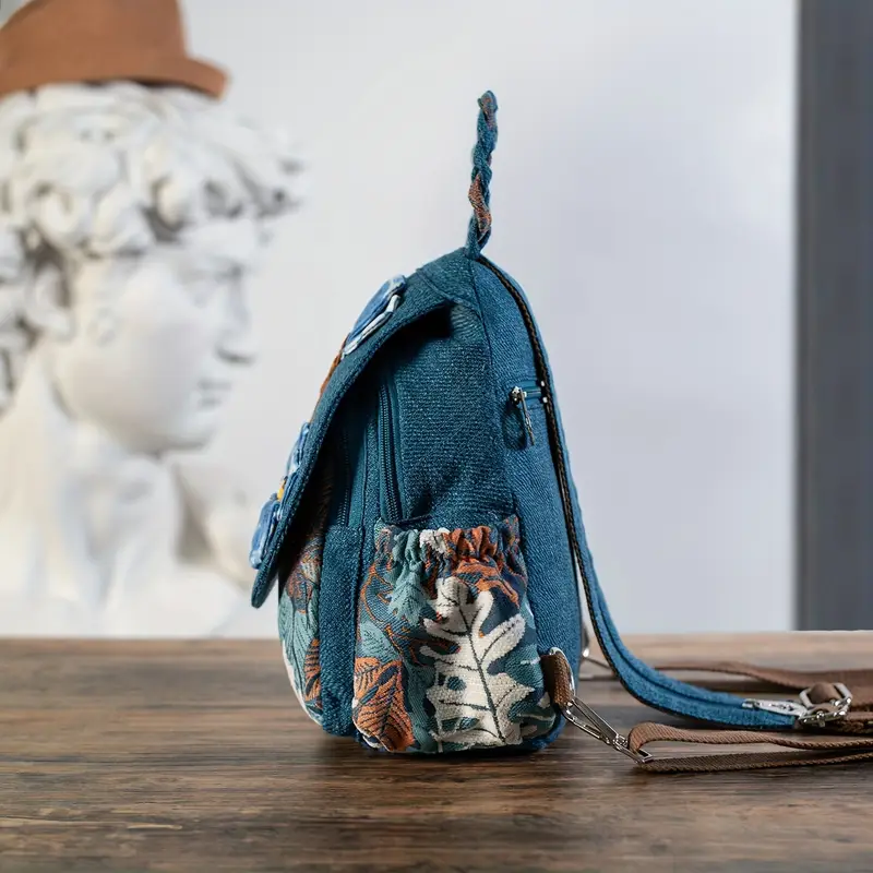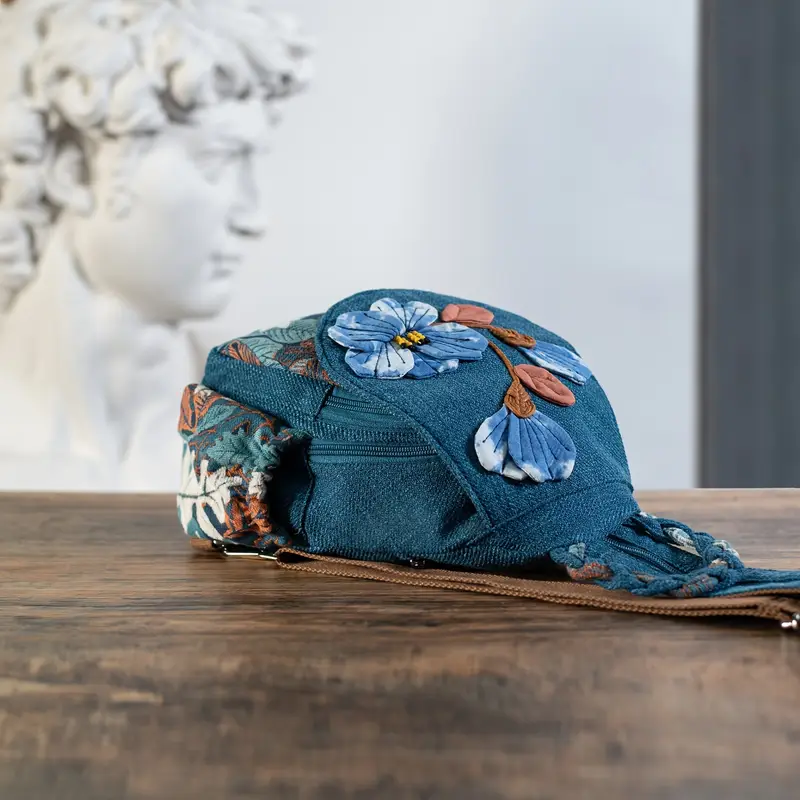 Plecak Denim z naszytymi kwiatami