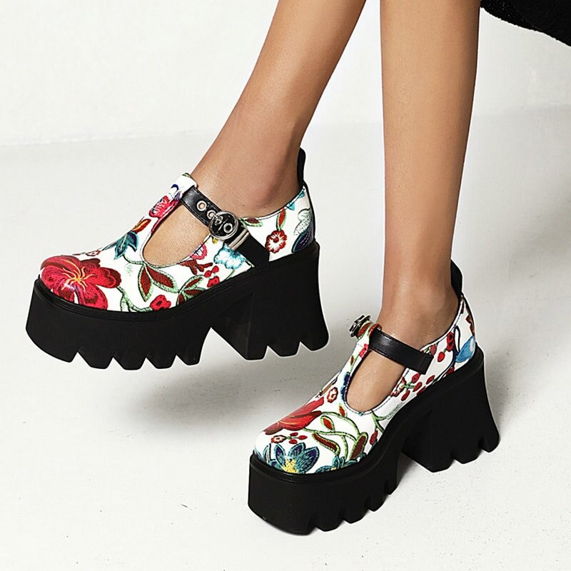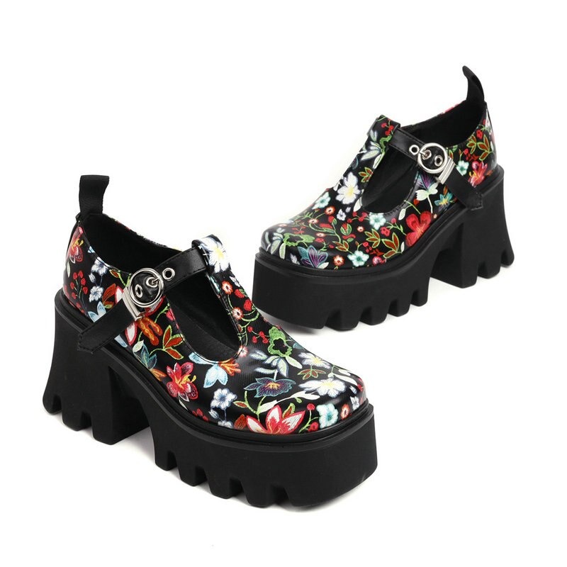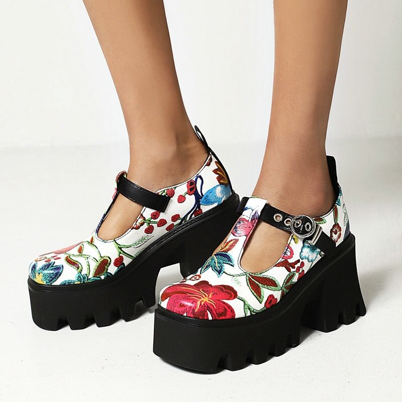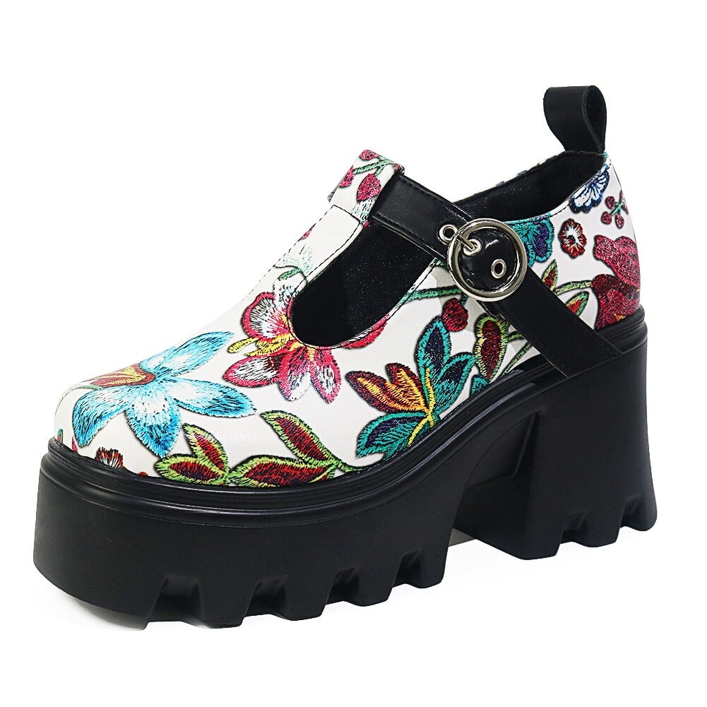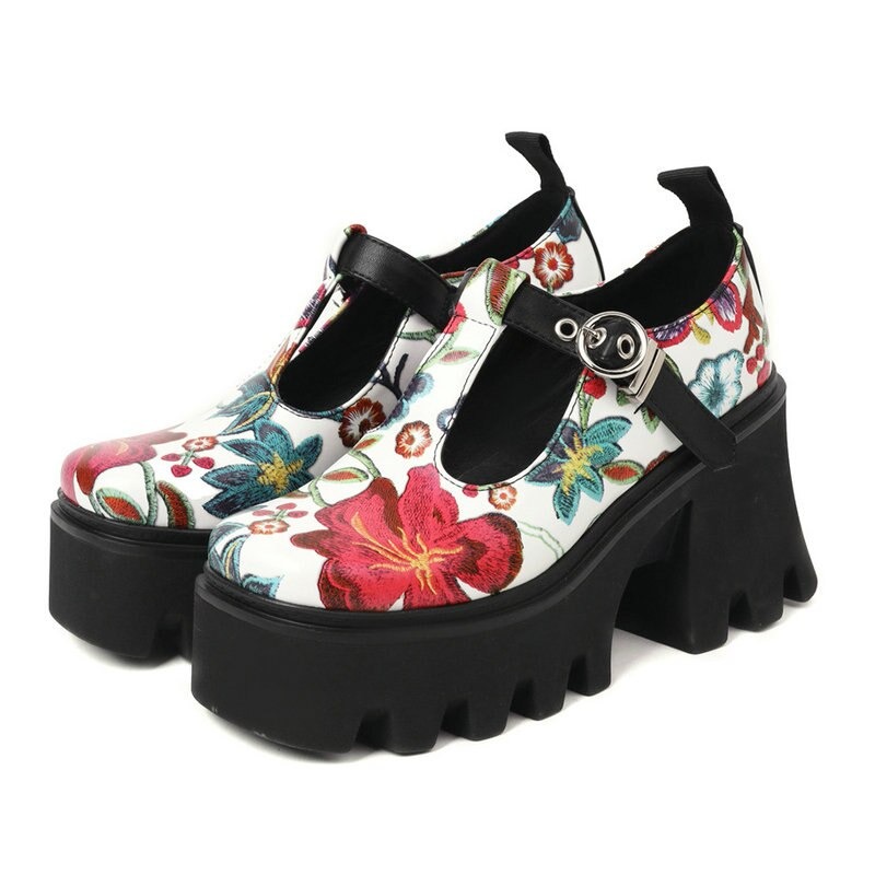 Półbuty platformy w kwiaty