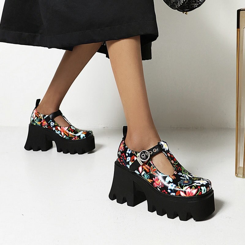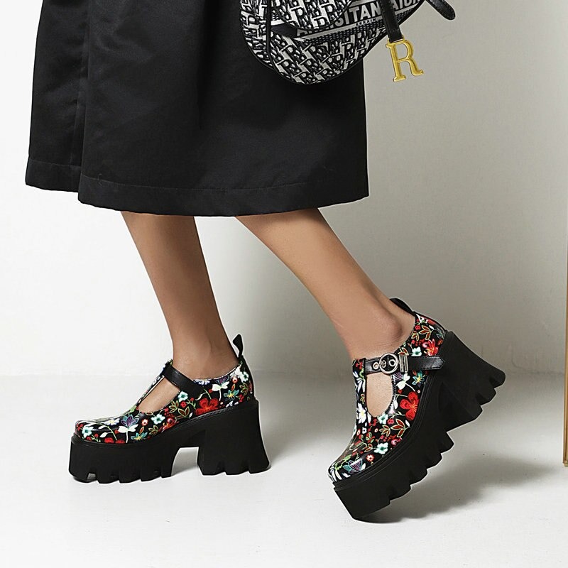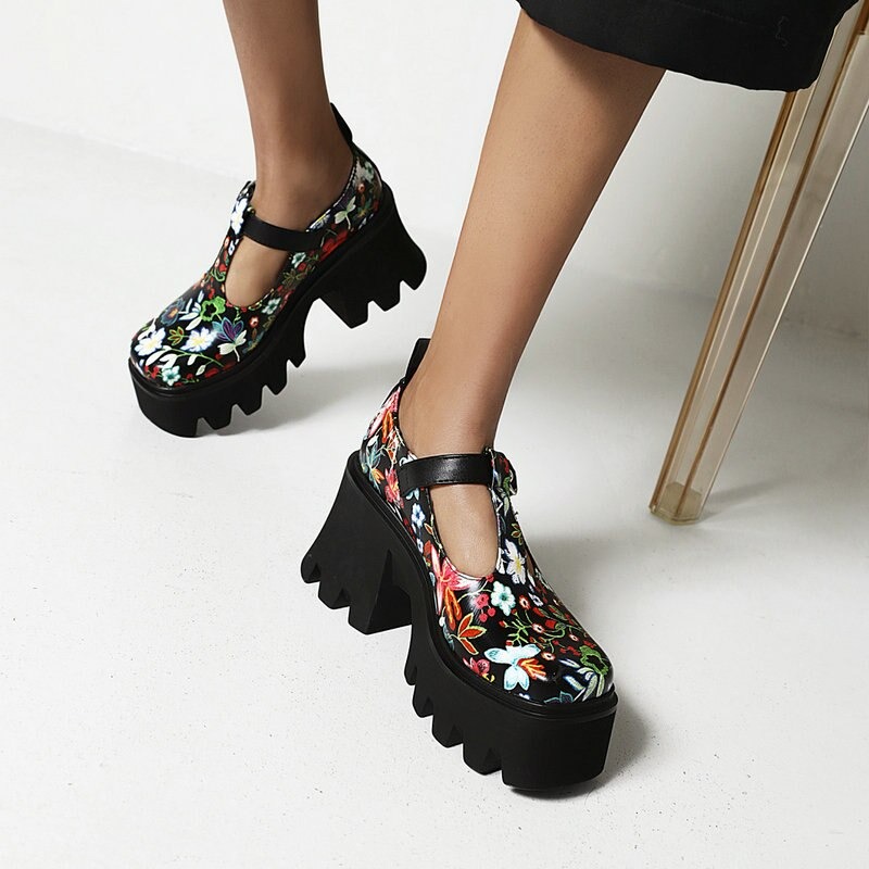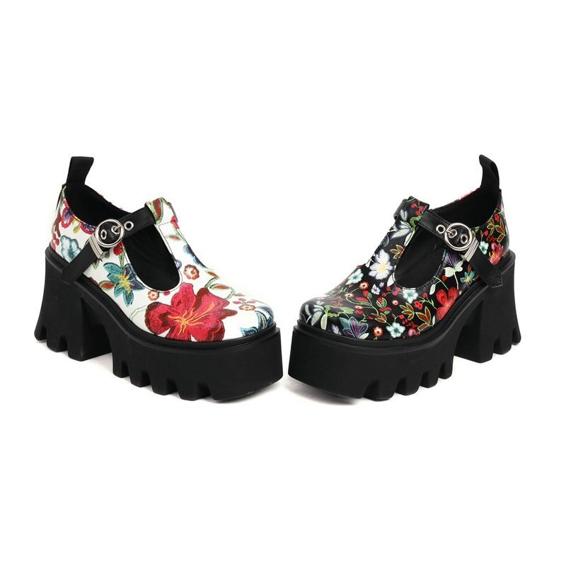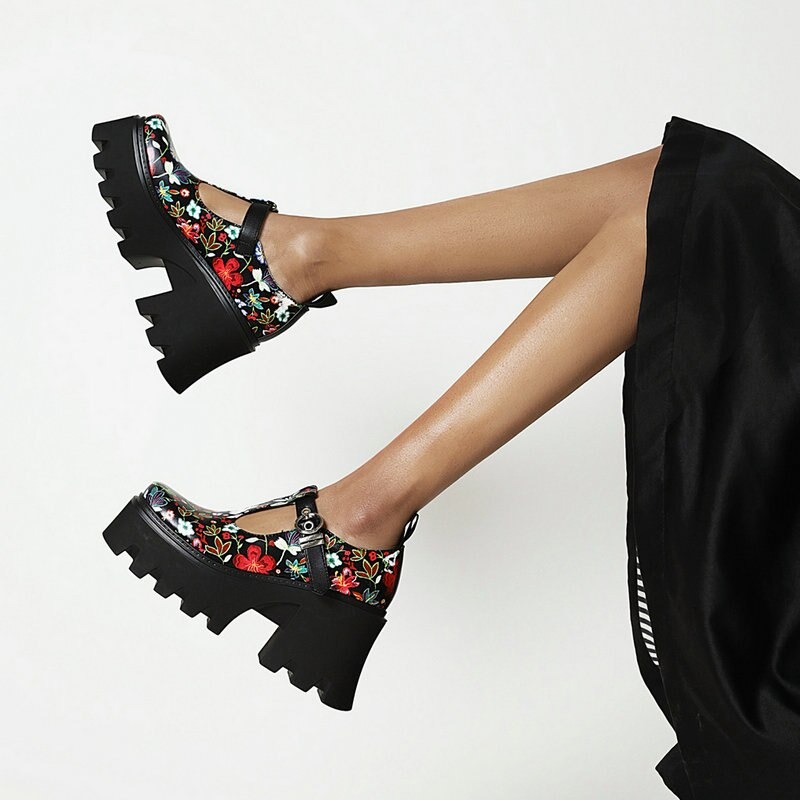 Półbuty platformy w kwiaty