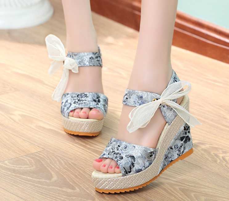 Sandały koturny wiązane