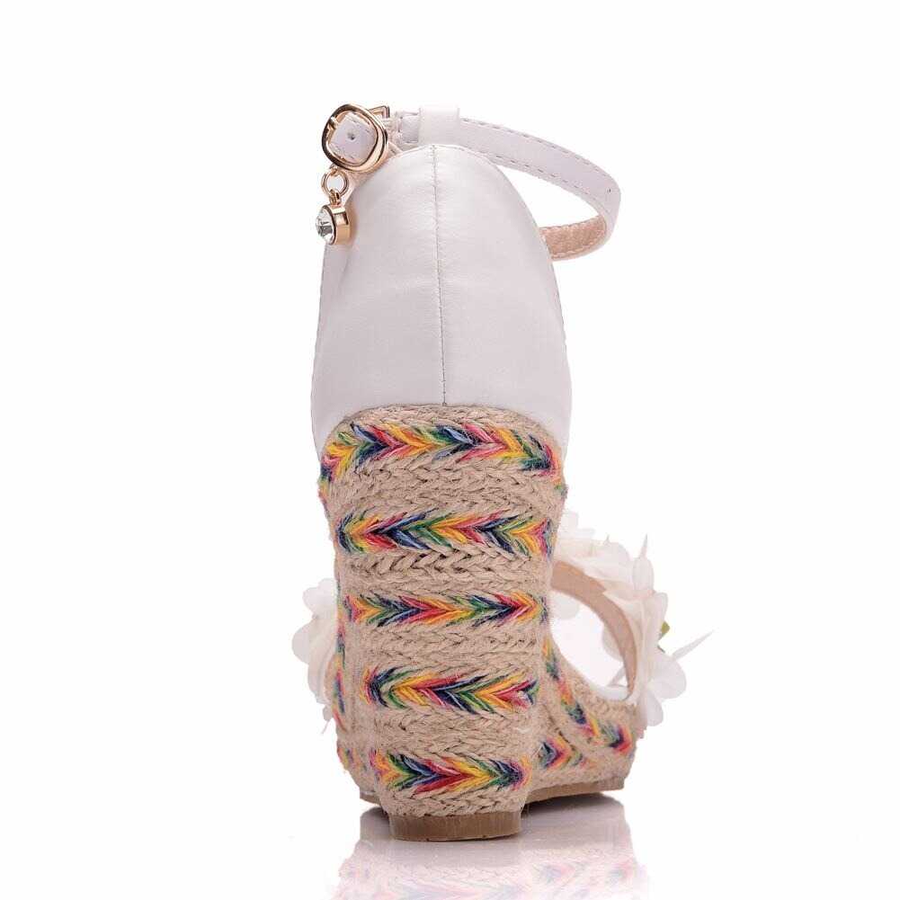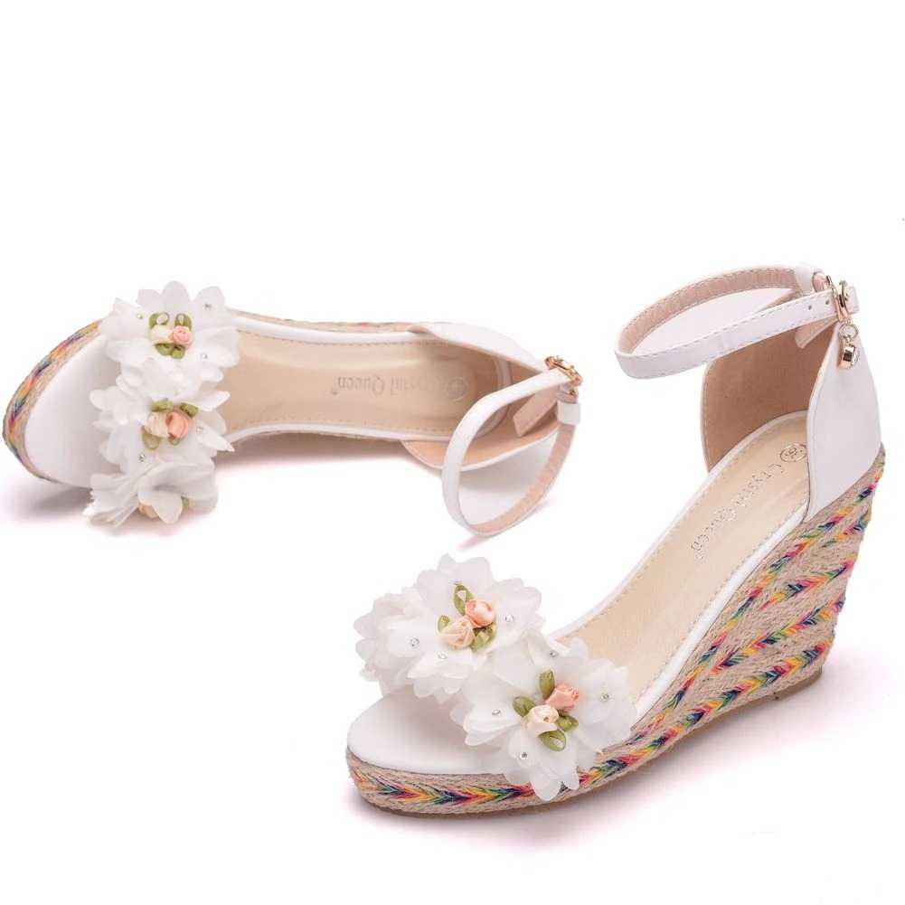 Sandały koturny z białymi kwiatami