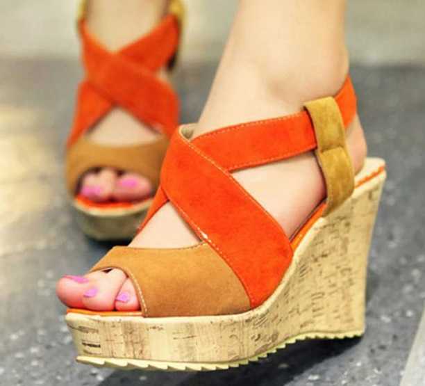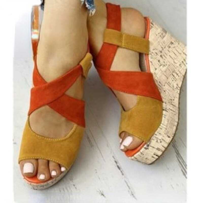 Sandały materiałowe na koturnie