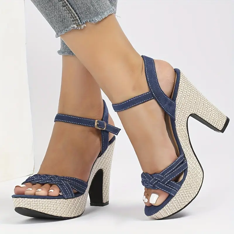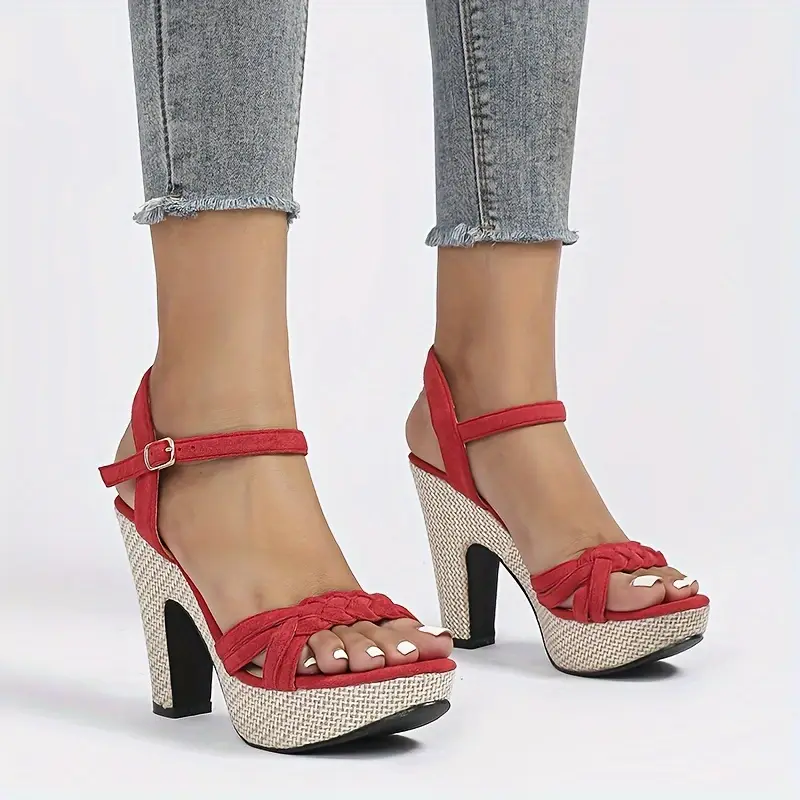 Sandały platformy z plecionym paskiem