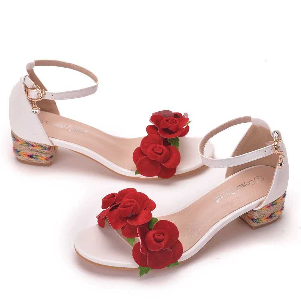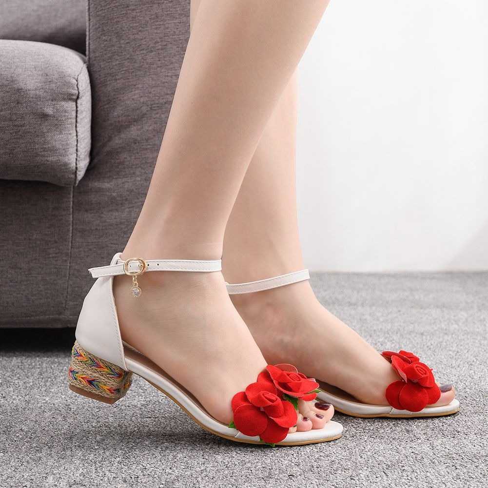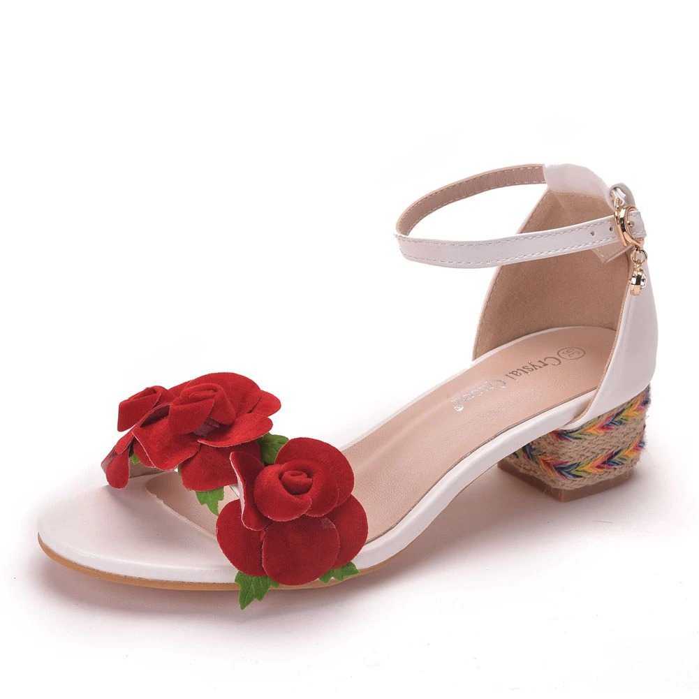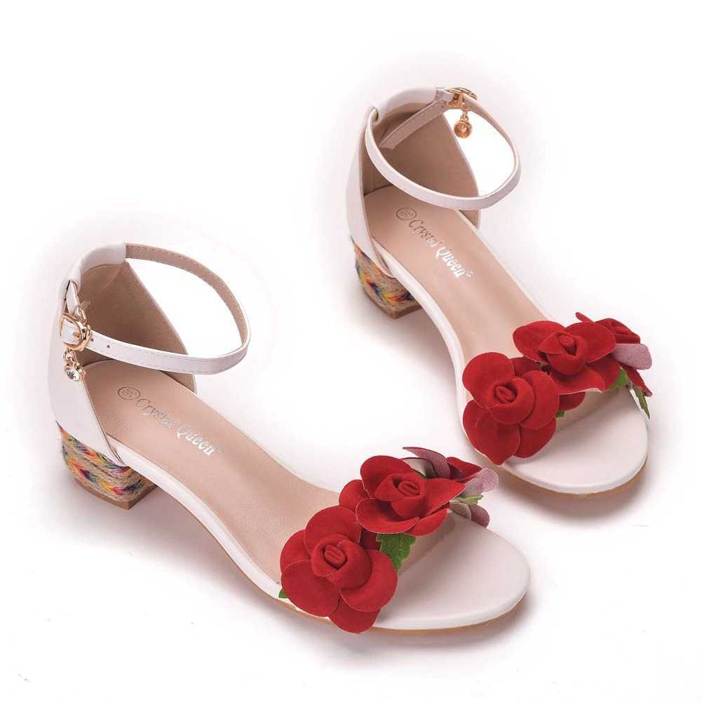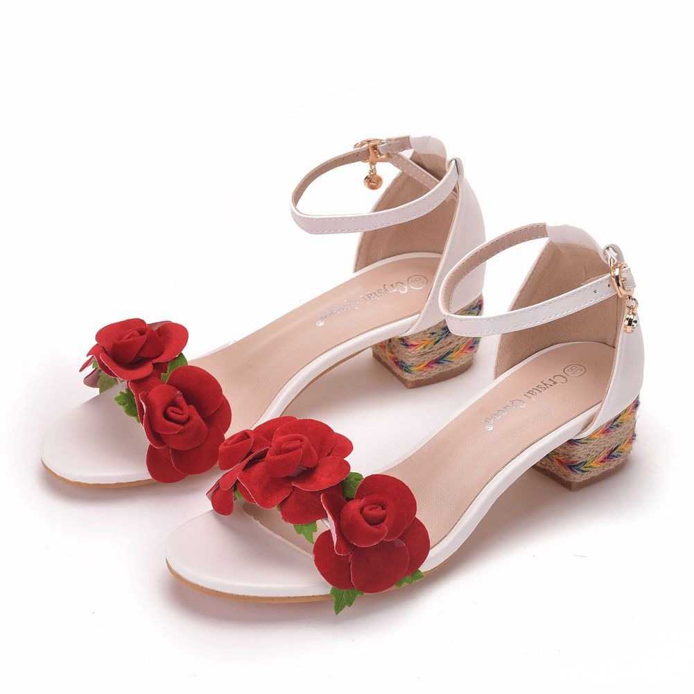 Sandały z czerwonymi kwiatami