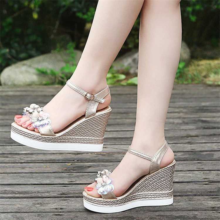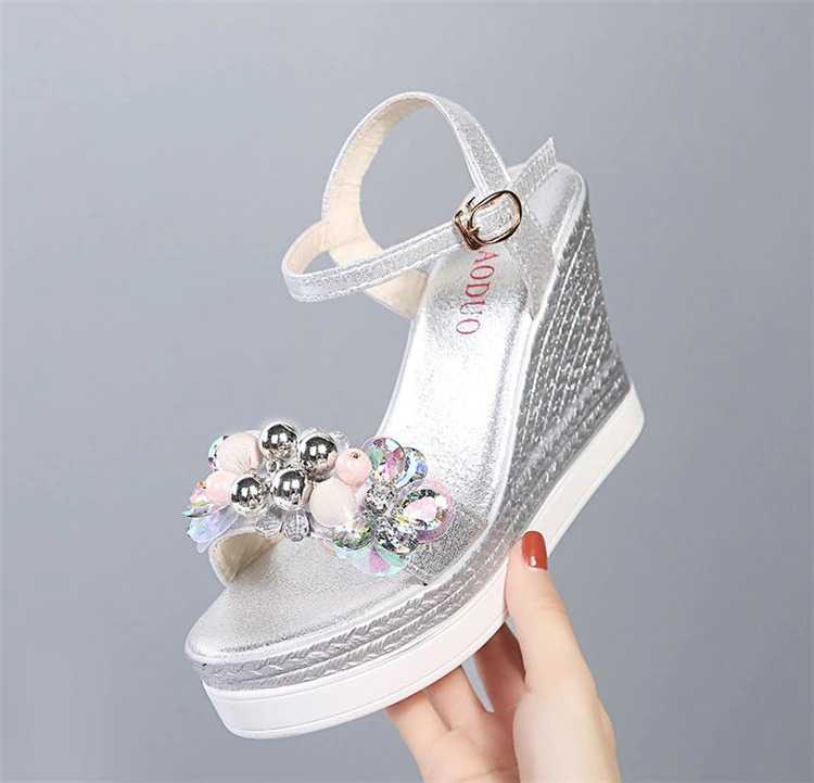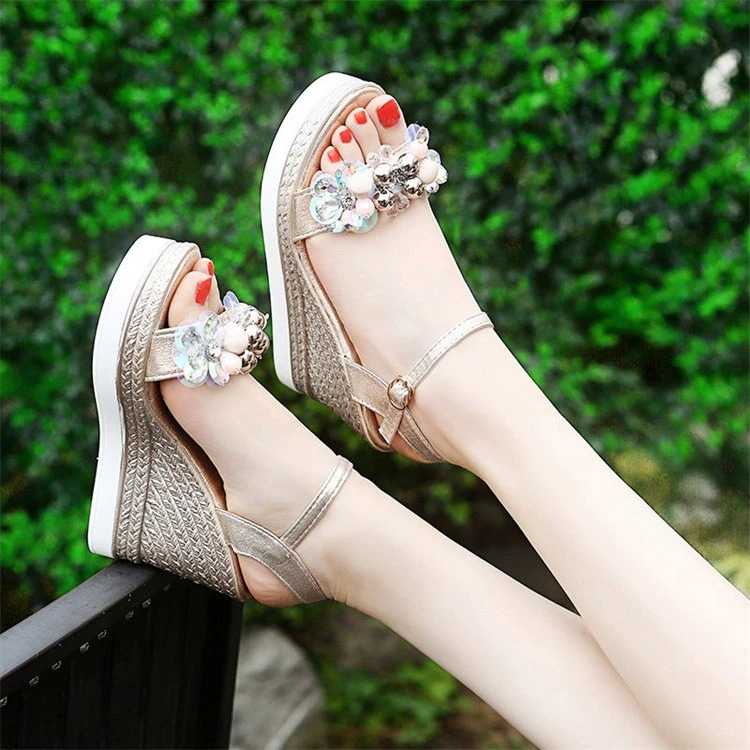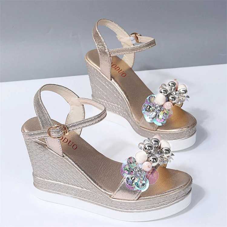 Sandały z kamykami i perełkami