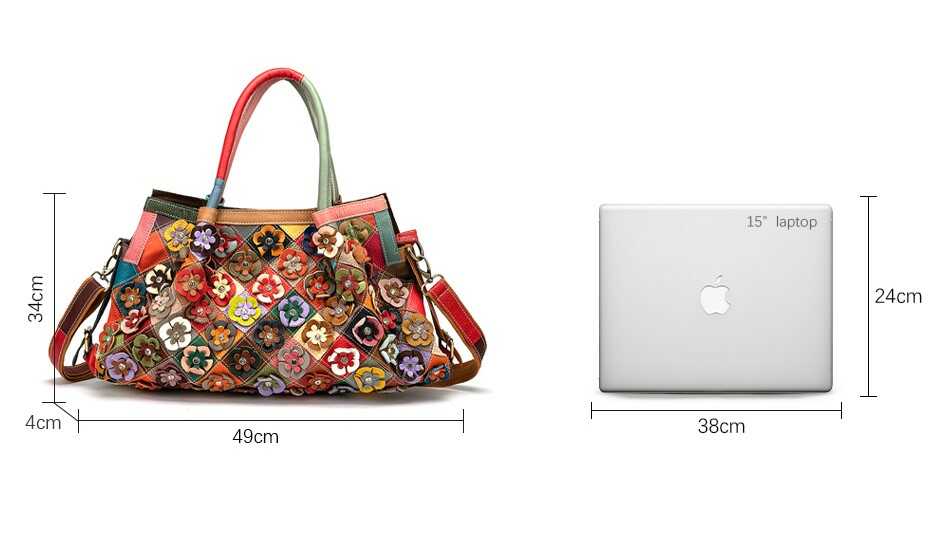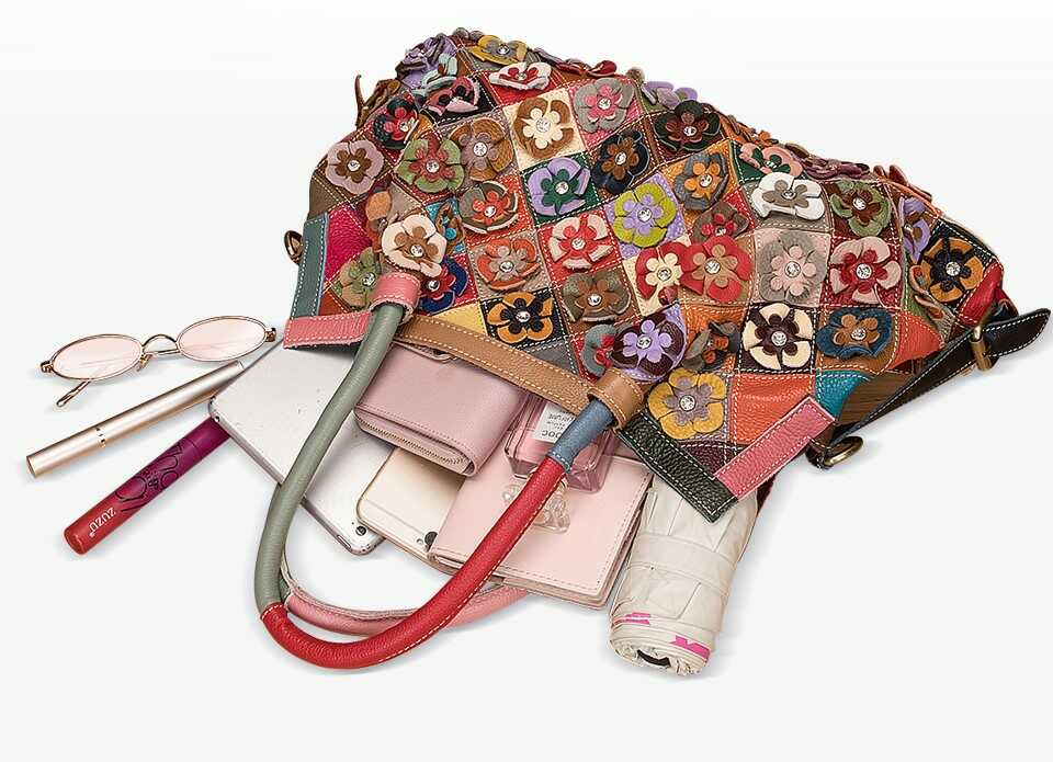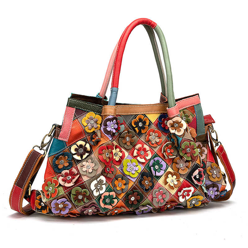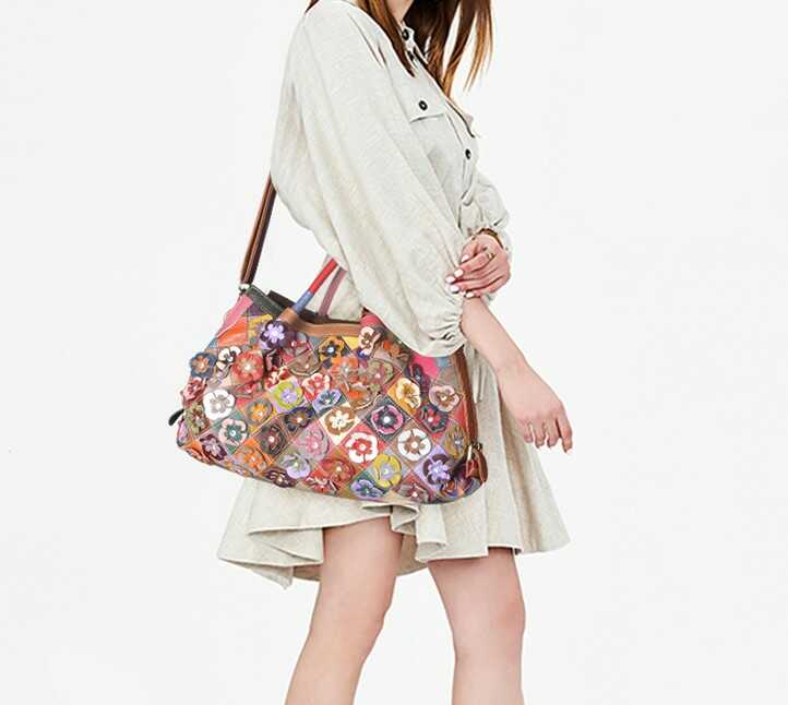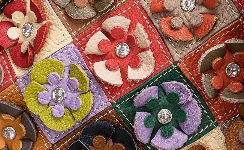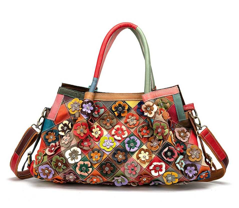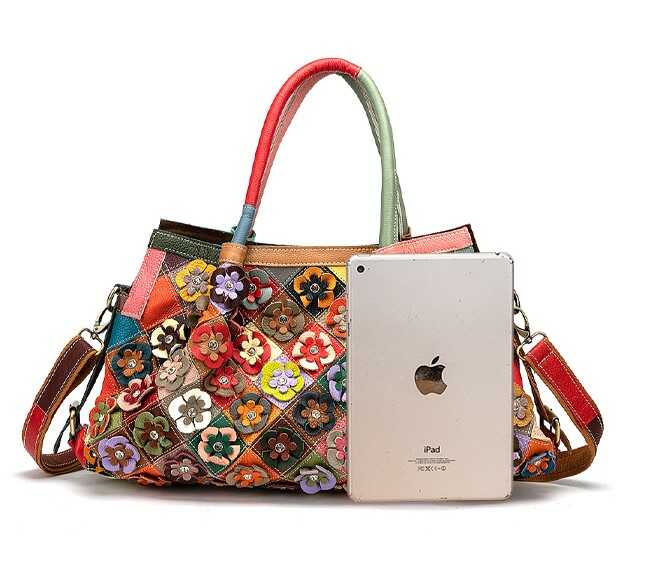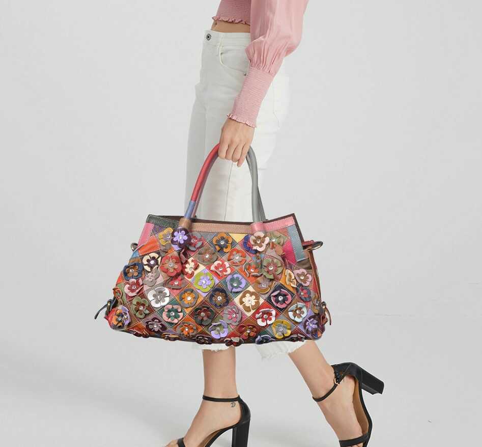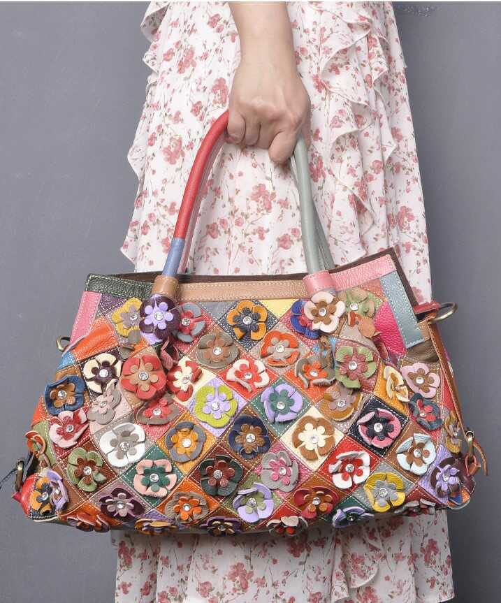 Skórzana torebka z kolorowymi kwiatkami