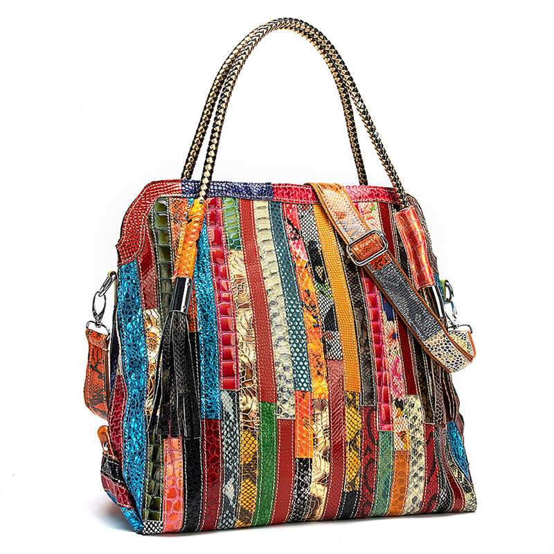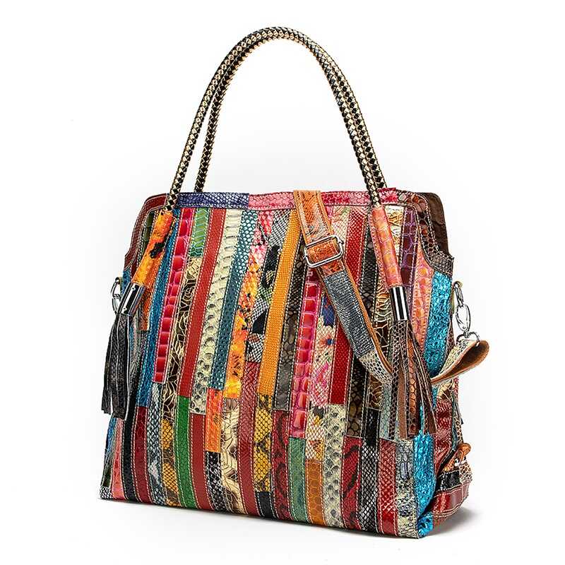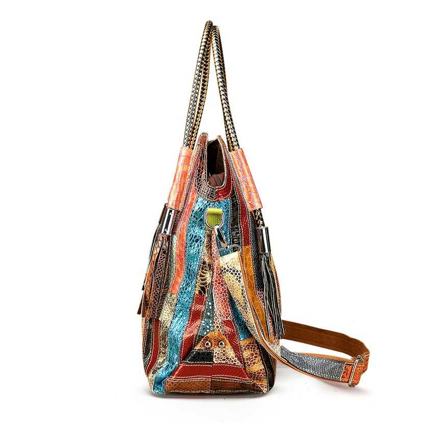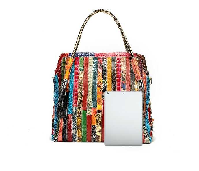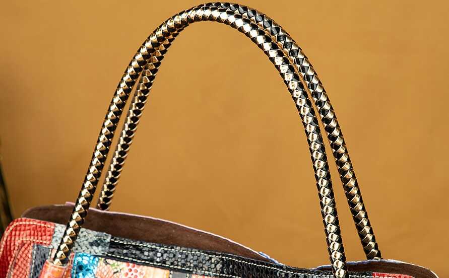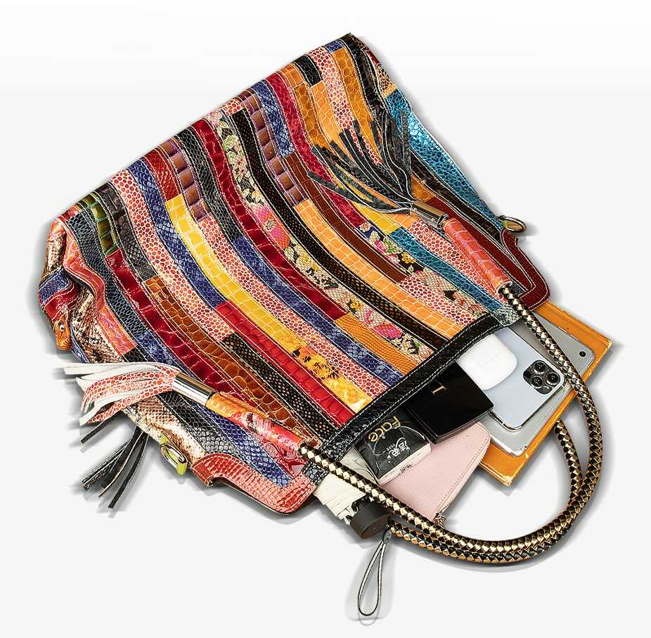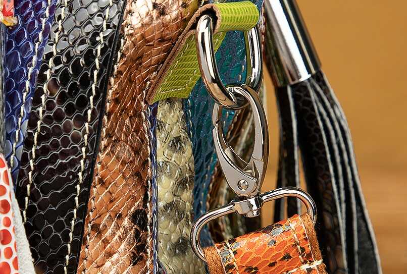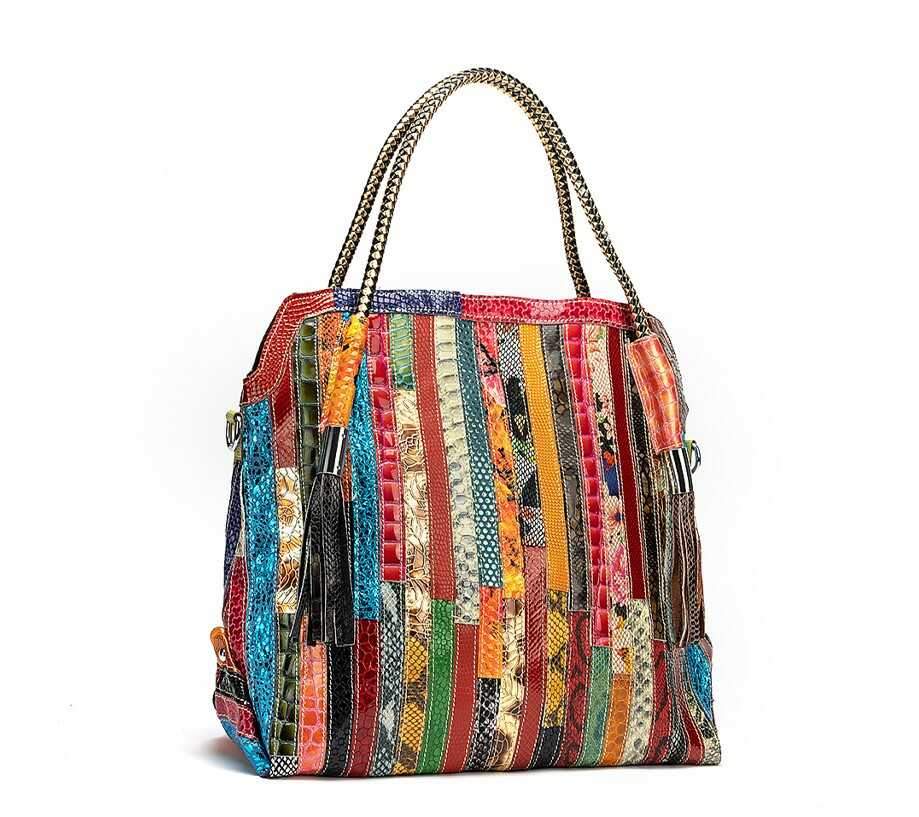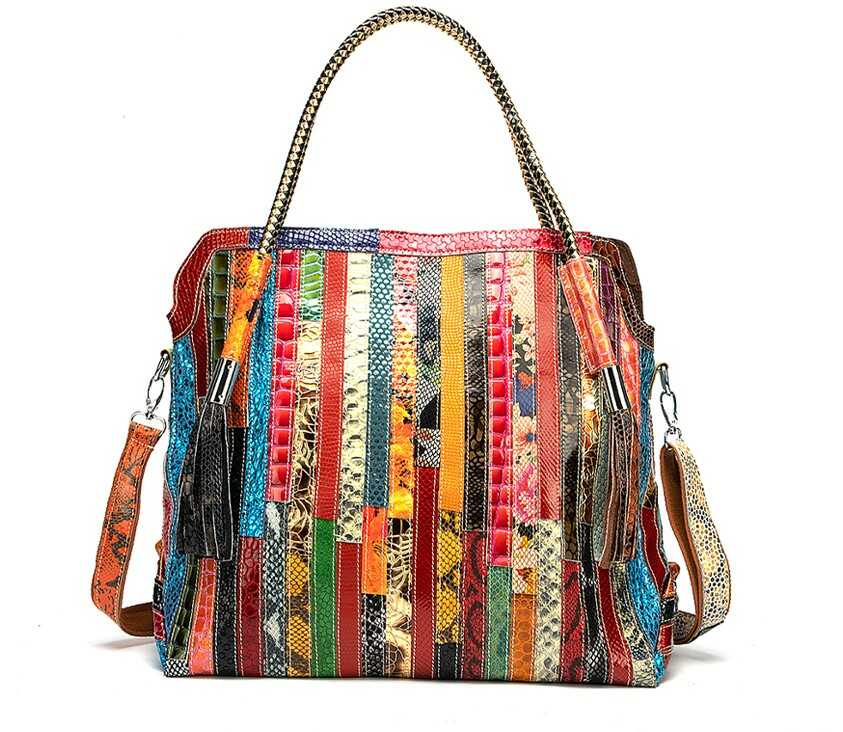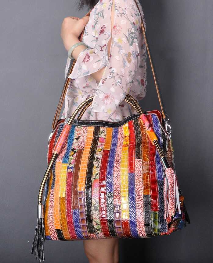 Skórzana torebka z kolorowymi paseczkami