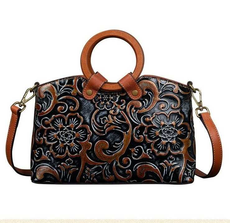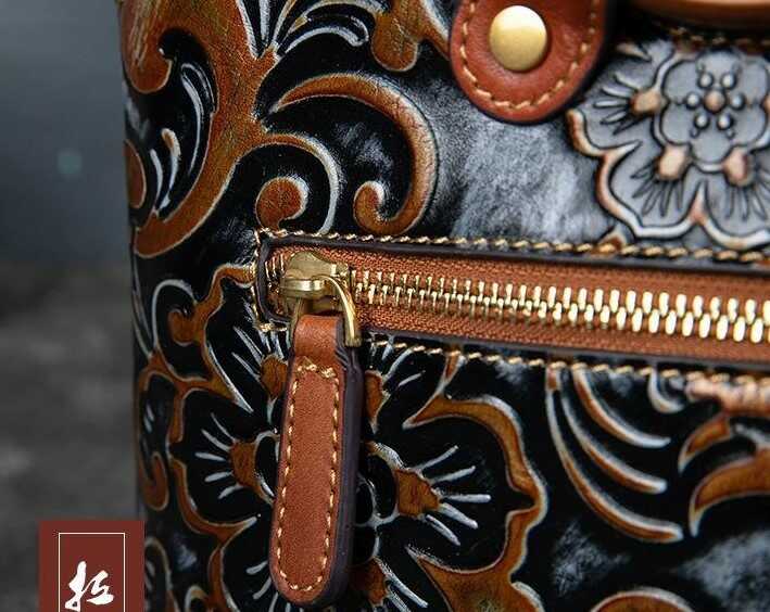 Skórzana torebka z wytłaczanym wzorem