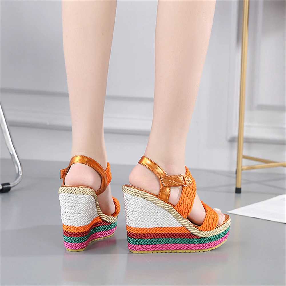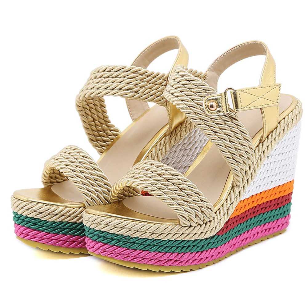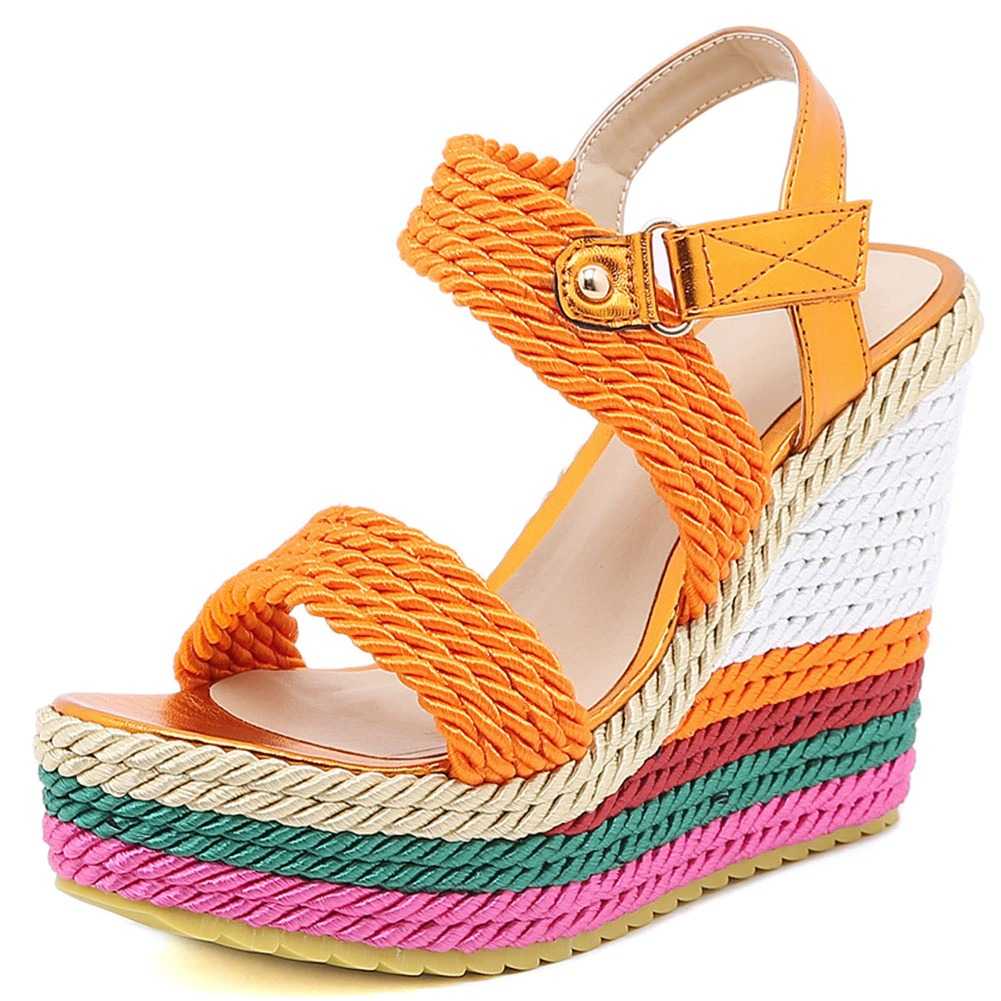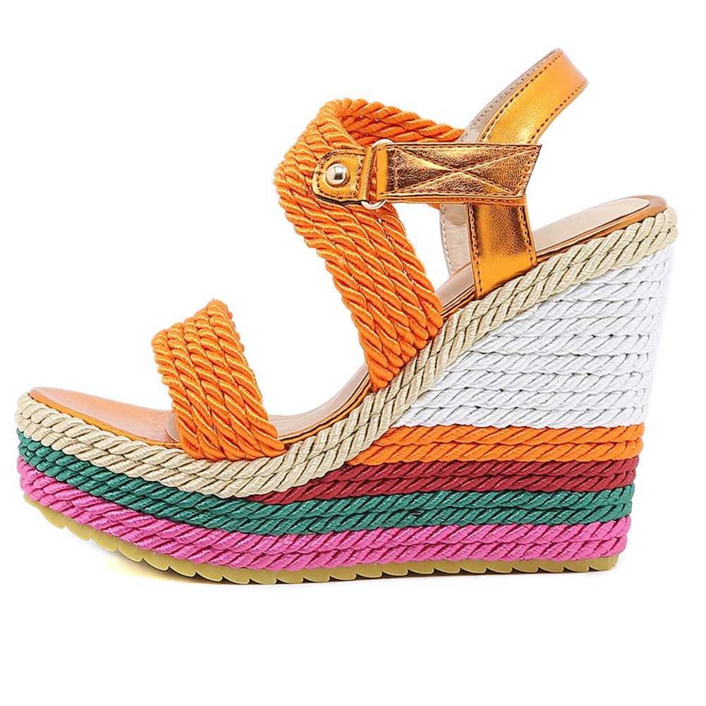 Sznurkowe kolorowe koturny sandały