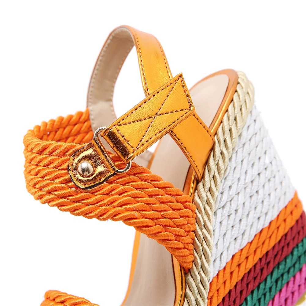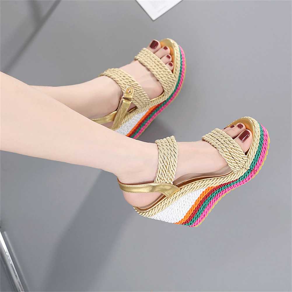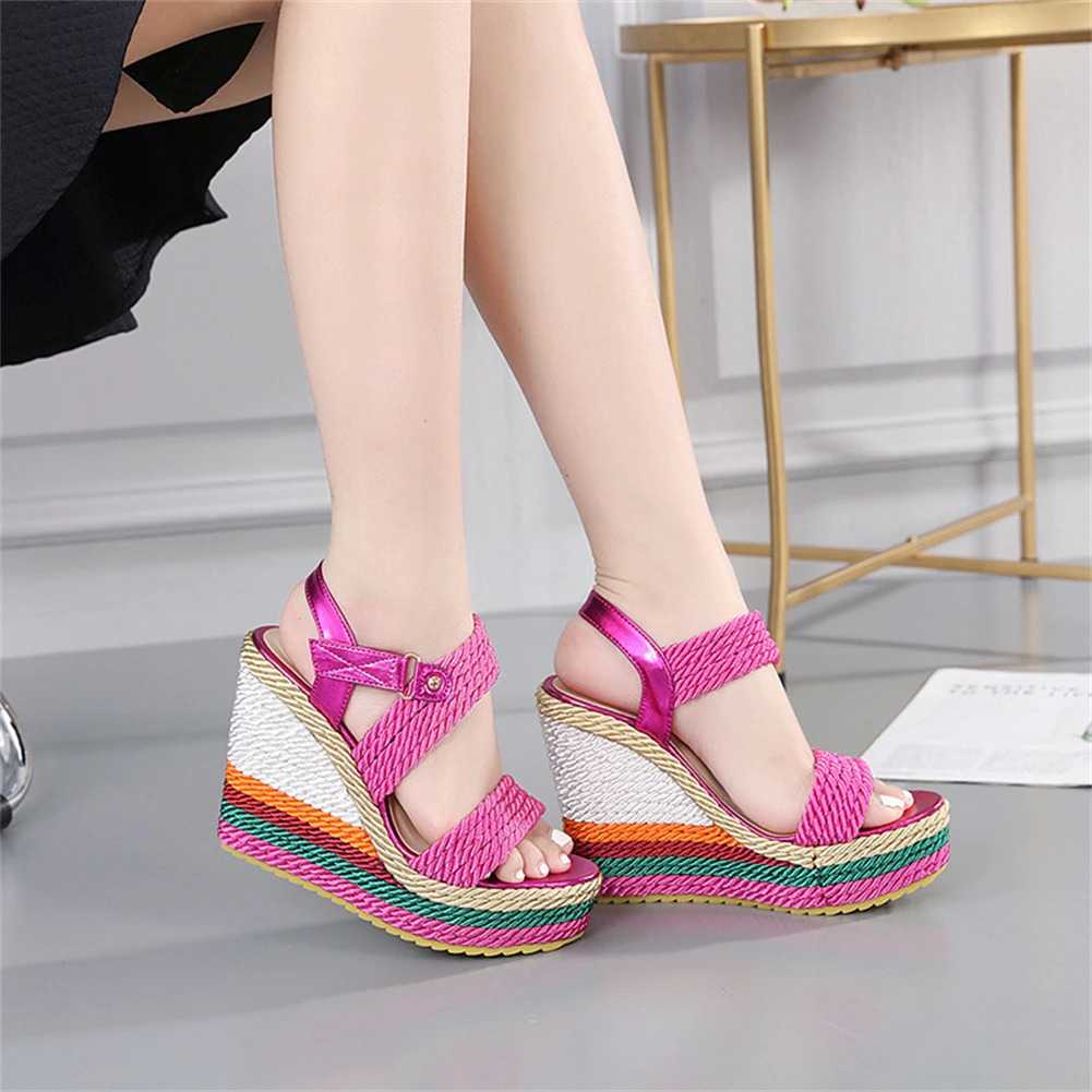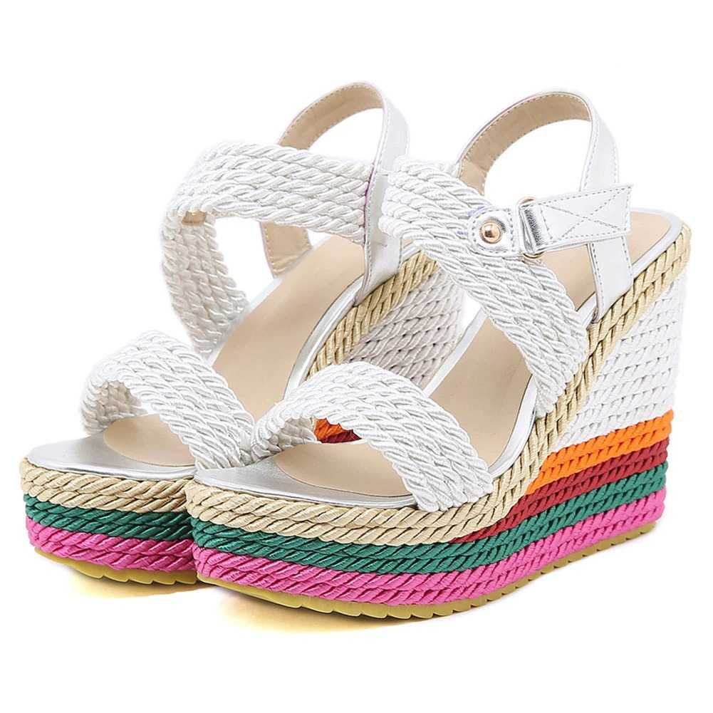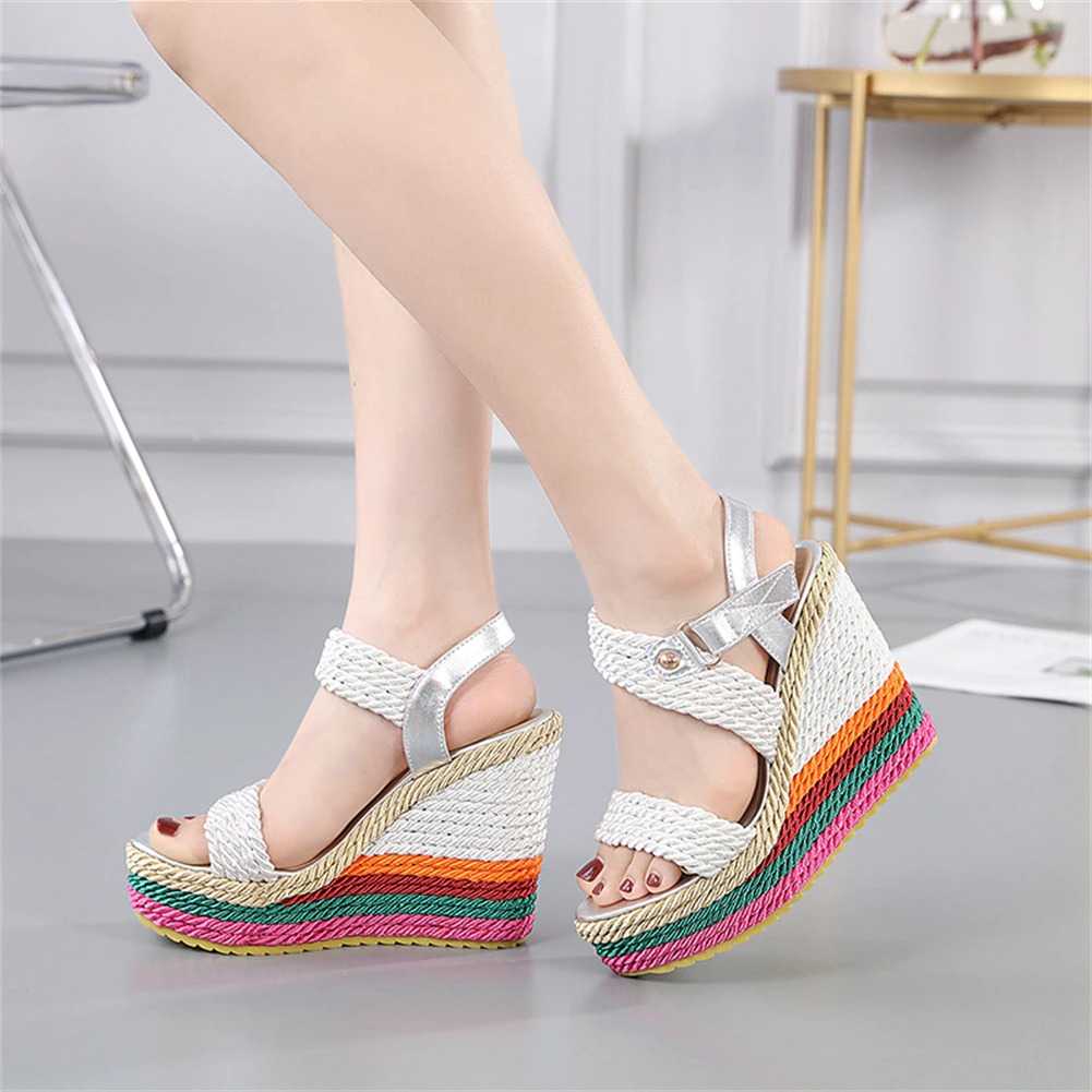Sznurkowe kolorowe koturny sandały