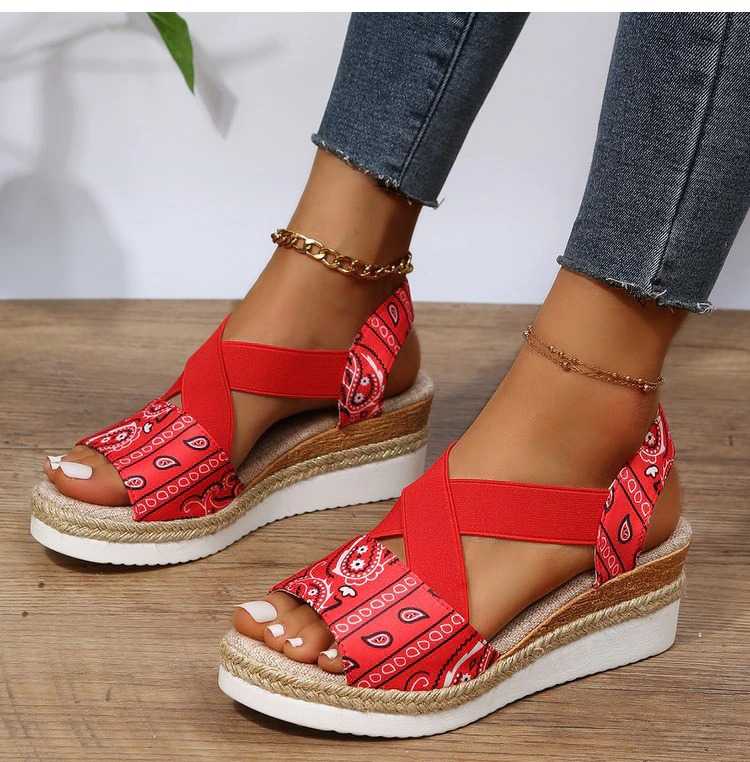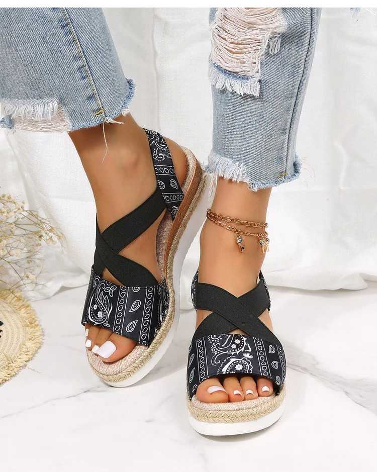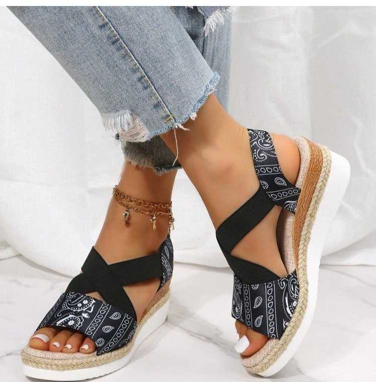 Tekstylne sandały ze wzorem