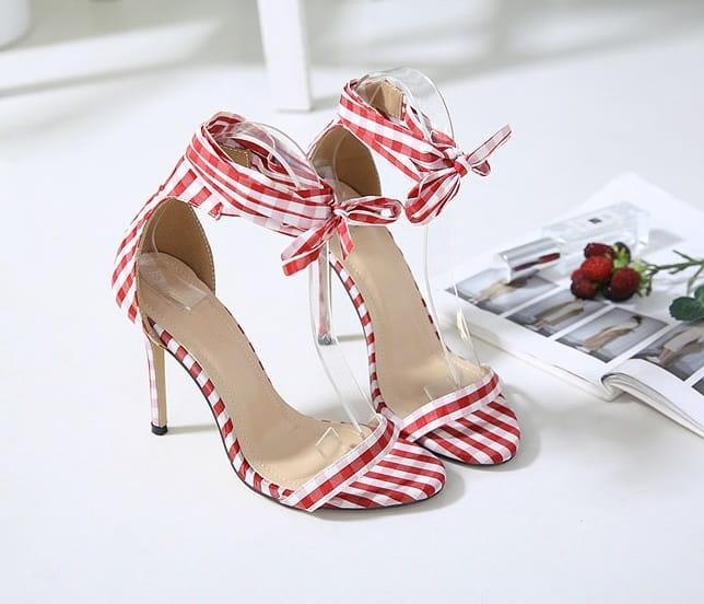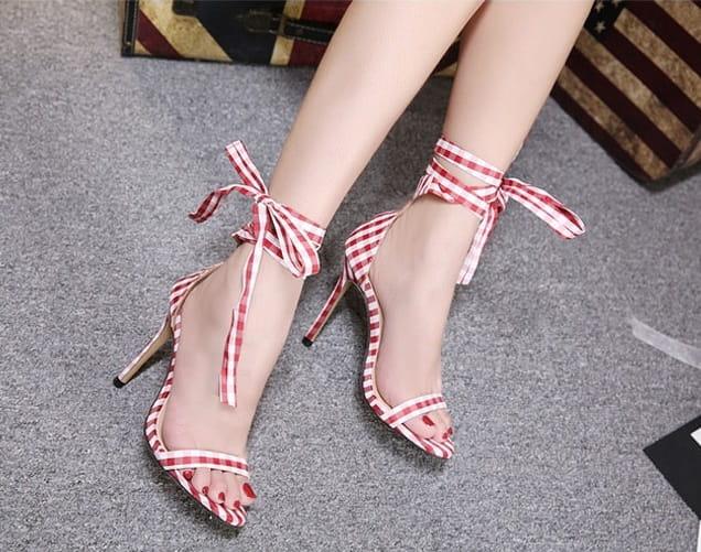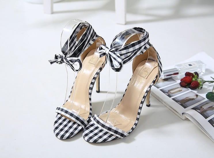 Wiązane sandały w kratkę